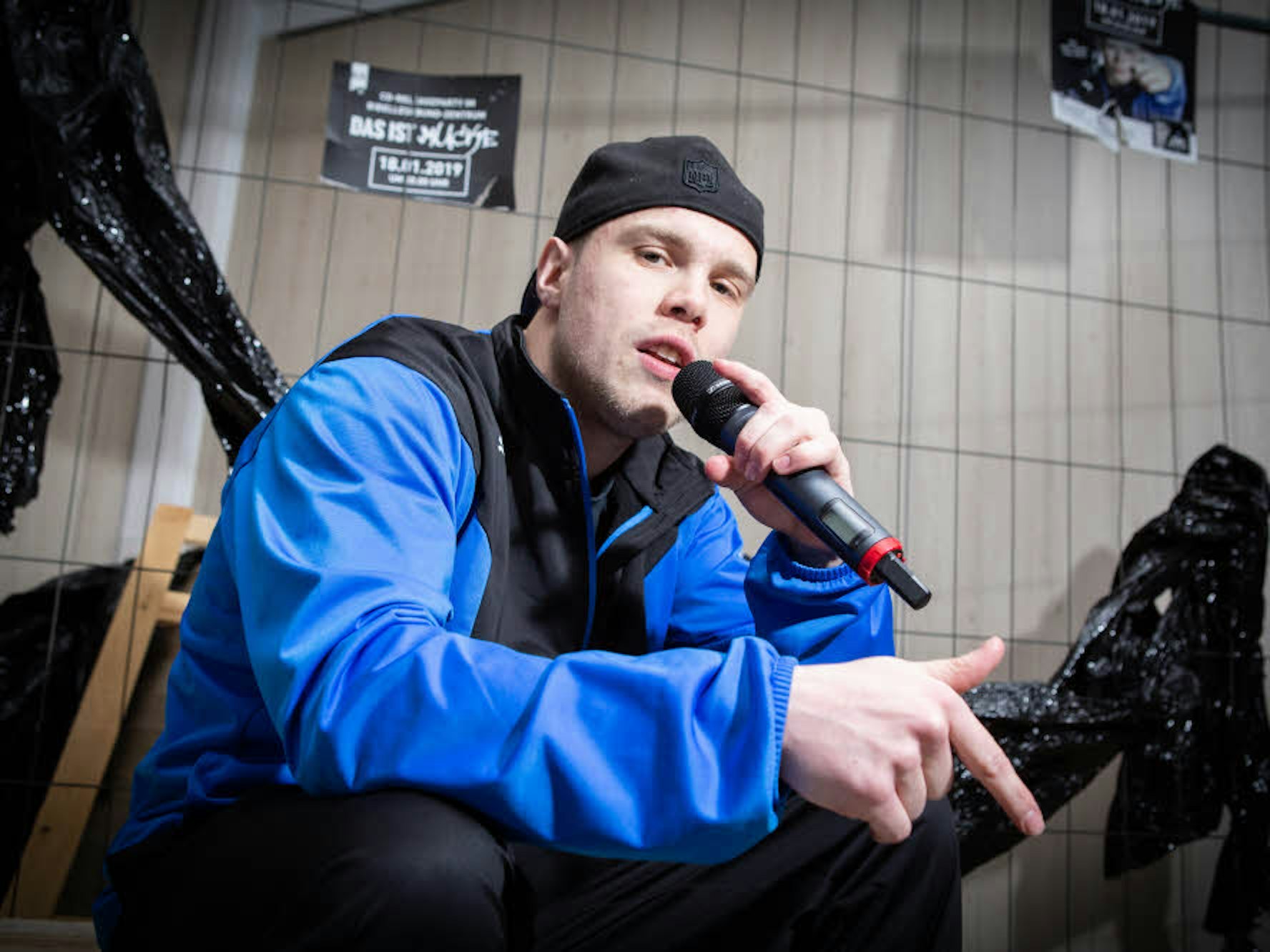 Kalsbach – Mit Hilfe seiner Kollegen hat Janosch Plavac sein Auto in das Gebäude des Bibellesebunds geschoben. Der Kleinwagen steht nun mit geöffnetem Kofferraum neben einem klapprigen Bauzaun und ein paar alten Europaletten. Wo in der Regel Ausstellungen und Seminare zu christlichen Themen stattfinden, herrscht Hinterhofatmosphäre – passend zur sogenannten Release-Party, bei der Plavac heute sein erstes Rap-Album „Das ist Mucke“ vorstellt. Der 26-Jährige fiebert seinem großen Abend schon entgegen.