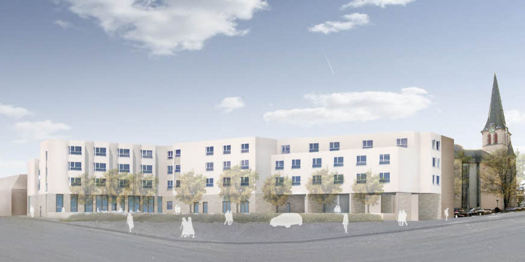 Mitten in der City soll der Neubau direkt neben der Kirche entstehen.