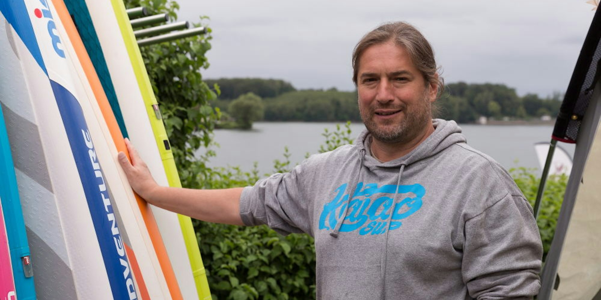 Frank Noack verleiht Stand-up-Paddeling Boards.