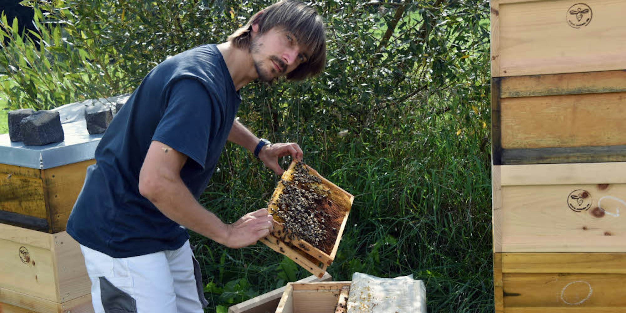In seinem Garten hält der Nümbrechter Felix Macht zurzeit acht Bienenvölker.