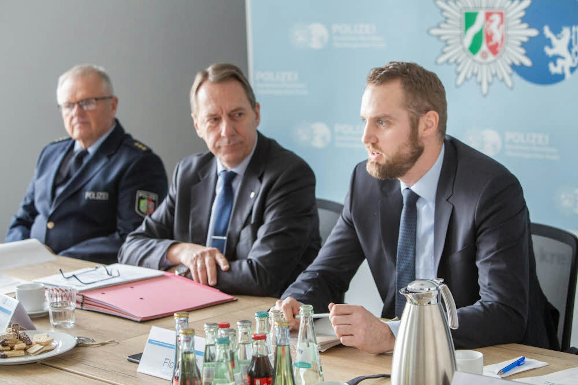 Die Statistik stellte der neue Leiter der Direktion Kriminalität, Florian Mohr (r.) zusammen mit Landrat Jochen Hagt (M.) und dem Abteilungsleiter Polizei, Ralf Schmidt, vor.