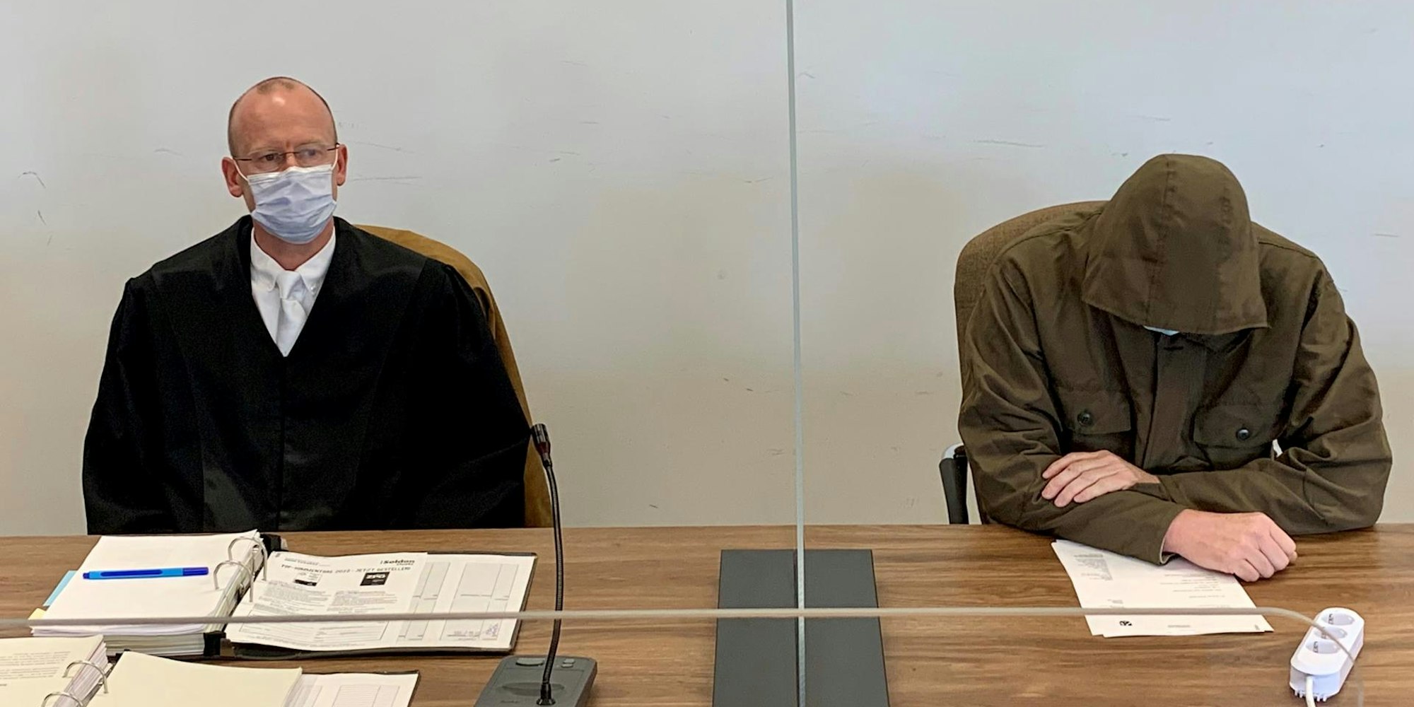 Vor Gericht: Der Gummersbacher Strafverteidiger Stephan Kuhl (l.) mit seinem Mandanten im Missbrauchsprozess jüngst in Köln.