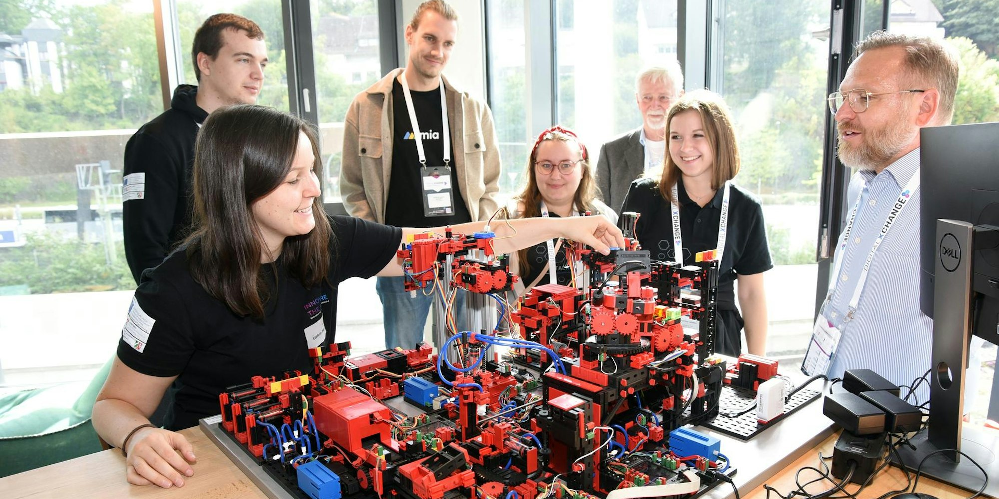 Mit den spielerischen Mitteln von Fischer-Technik, vor allem aber mit praxisnahen Maschinen demonstriert die Modellfabrik des Innovation Hubs die Möglichkeiten der industriellen Digitalisierung.
