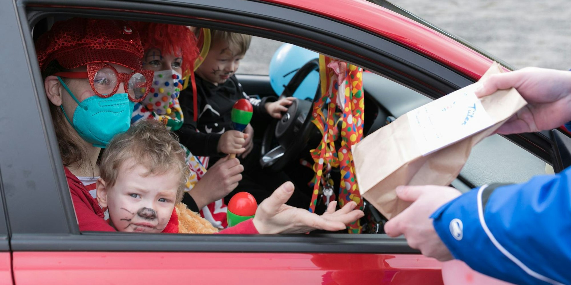 Während er am Samstag die Tüten durch das Beifahrerfenster reichte, warf der Vorsitzende Frank Uselli Kamelle in den Innenraum der Autos. Eine Fahrzeugbesatzung orderte gleich „Achtmal Karneval“.