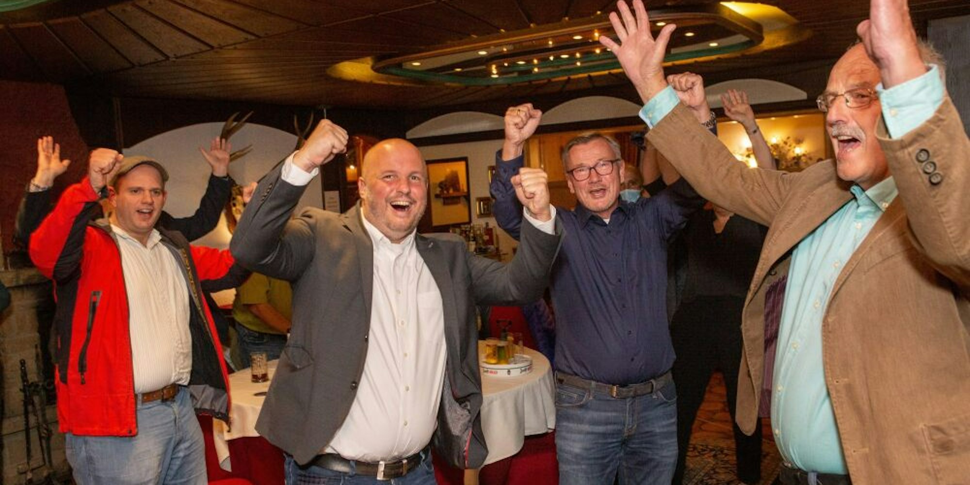Mit seinen Anhängern feierte Matthias Thul (M.) seinen deutlichen Wahlsieg. Auch die CDU hat Grund zum Jubel: Thul ist der erste CDU-Bürgermeister seit 16 Jahren.