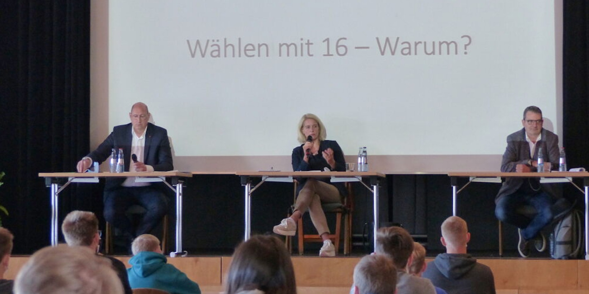 „Aber als als Geschäftsführerin der Ökumenischen Initiative, einer gemeinnützigen Einrichtung, muss ich parteipolitisch neutral sein.“ Alle drei ermutigen die Schüler, sich politisch zu engagieren und sich für ihre Interessen einzusetzen. Deshalb sei es auch gut und wichtig, dass man bei der Kommunalwahl schon ab 16 Jahren wählen darf. „Ihr entscheidet mit, was hier passiert.“