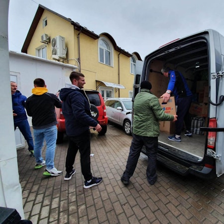 Ein Fahrer machte sich Anfang mit einem Transporter trotz der aktuellen Lage in Charkiw auf den Weg dorthin, um die erste von bisher drei geplanten Hilfslieferungen in das Krankenhaus vor Ort bringen.