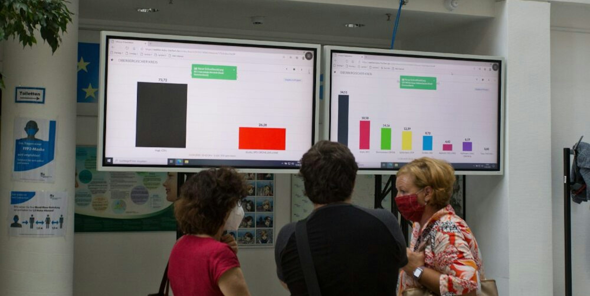Auf den Bildschirmen zeichnete sich früh ab, dass die Christdemokraten wieder fast aller Direktmandate holen würden.