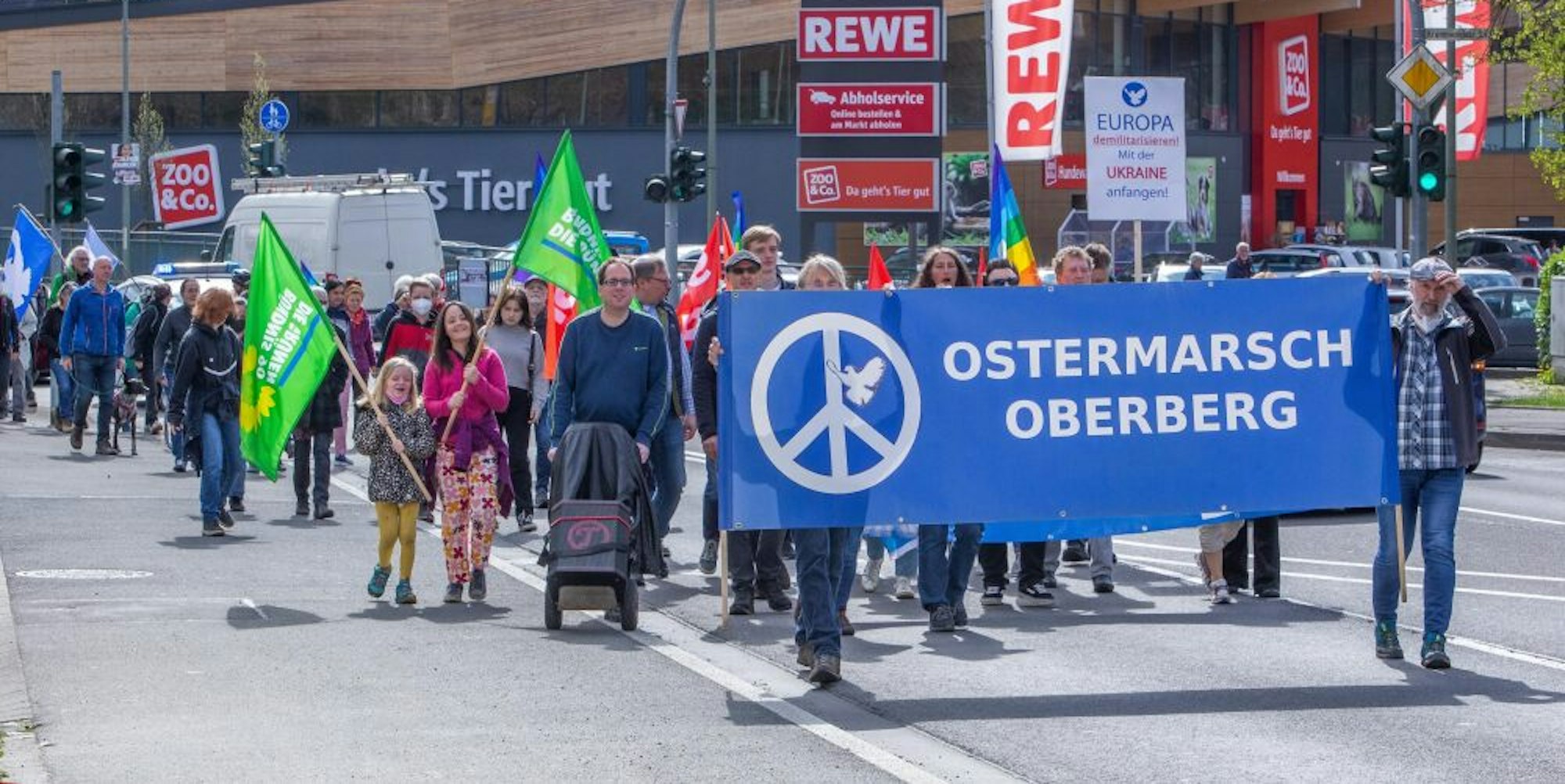 Gummersbach – „Frieden – Verhandeln statt töten“, „Nur Pazifismus schafft Frieden“ und „Alle Waffen morden – egal, wer sie nutzt“: Das sind nur drei der vielen Botschaften, die beim Ostermarsch in die Stadtmitte Gummersbachs auf und Schildern und Bannern zu lesen waren.
