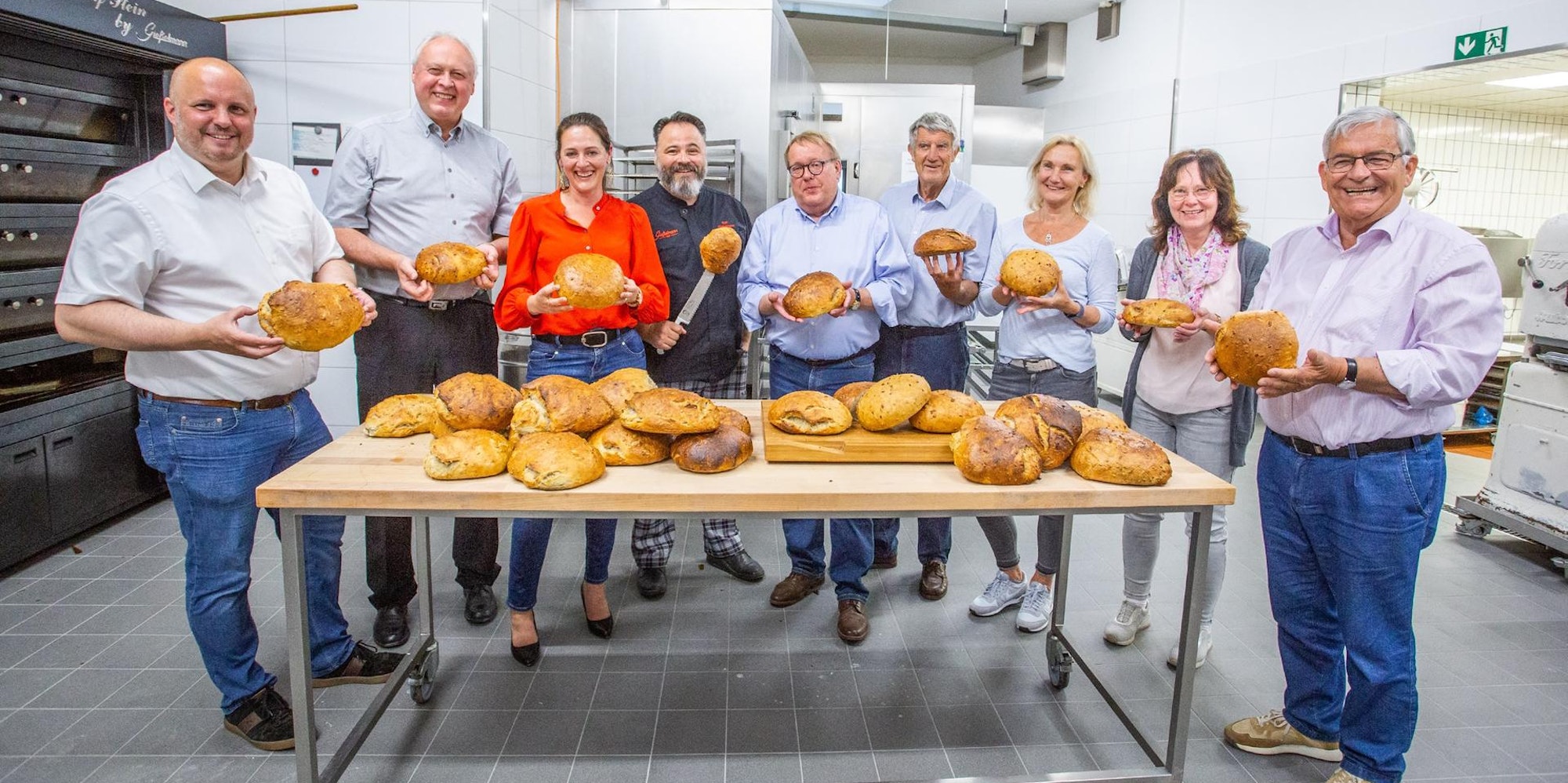 Bei der Brotbackaktion packten neben Ralf Gießelmann (4.v.l.) auch die Bürgermeister mit an.