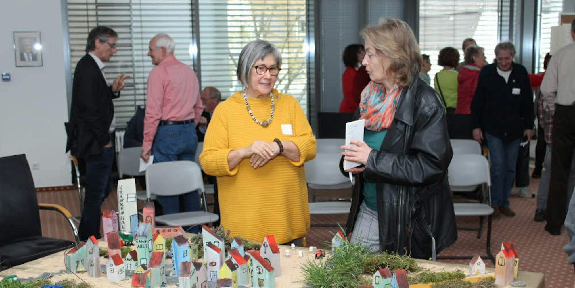 Groß war das Interesse der Bürger an dem Lia-Projekt, das Brigitte Lorenz (l.) am Dorfmodell gerne erläuterte.