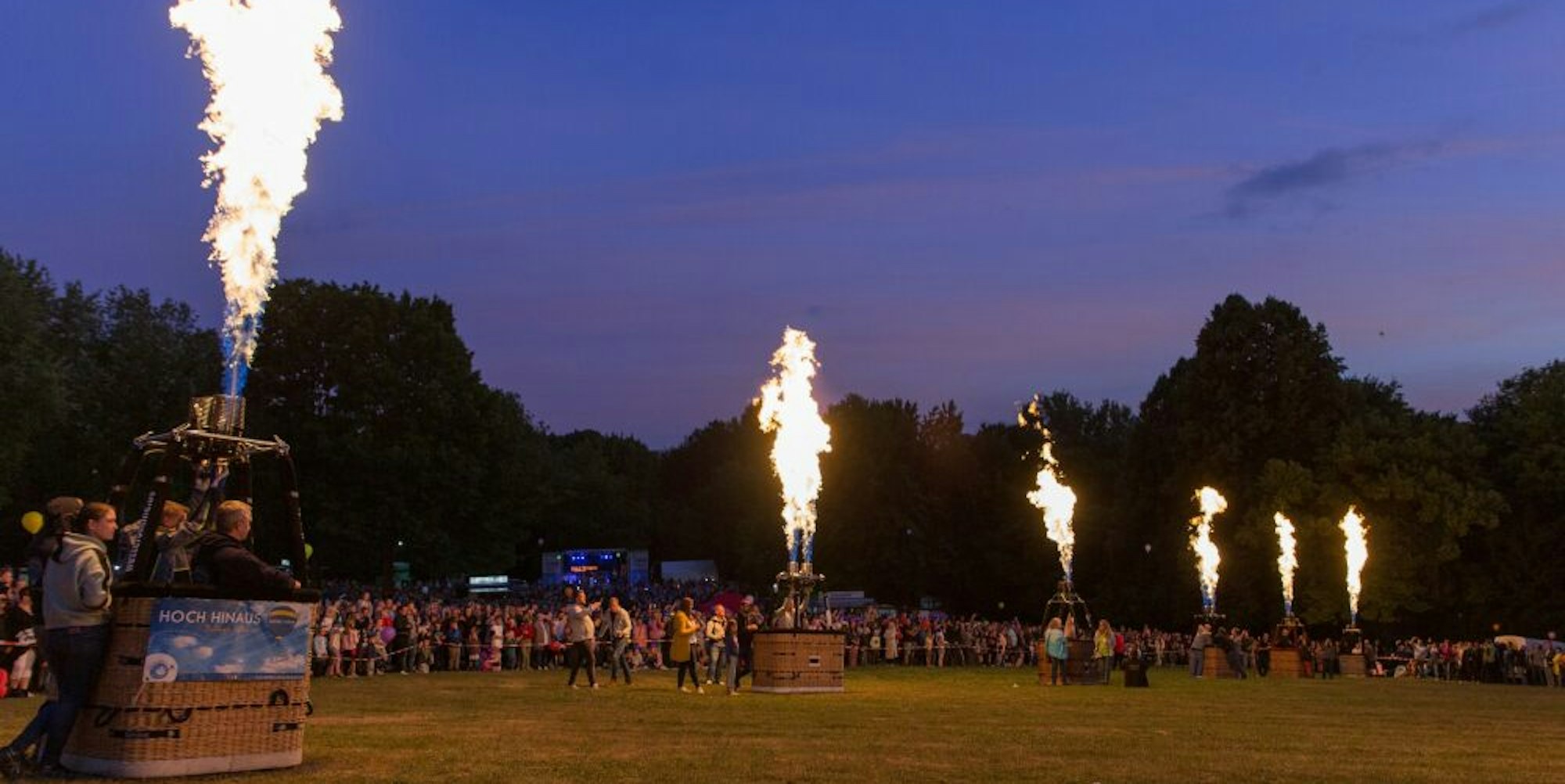 Anschließend füllte sich der Kurpark mit rund 7000 Menschen zur Livemusik des Jugendorchesters Heddinghausen unter Leitung von Marco Fischdick, das die Massen auf das Highlight des Abends, das Ballonglühen vorbereitete. Wegen des Windes aber konnte dieses nur ohne Hüllen stattfinden. Thomas Lepperhoff, Vorsitzender des Ballonsportclubs Reichshof, erklärte: „Bei solchen Böen würden die Hüllen am Boden liegen.“