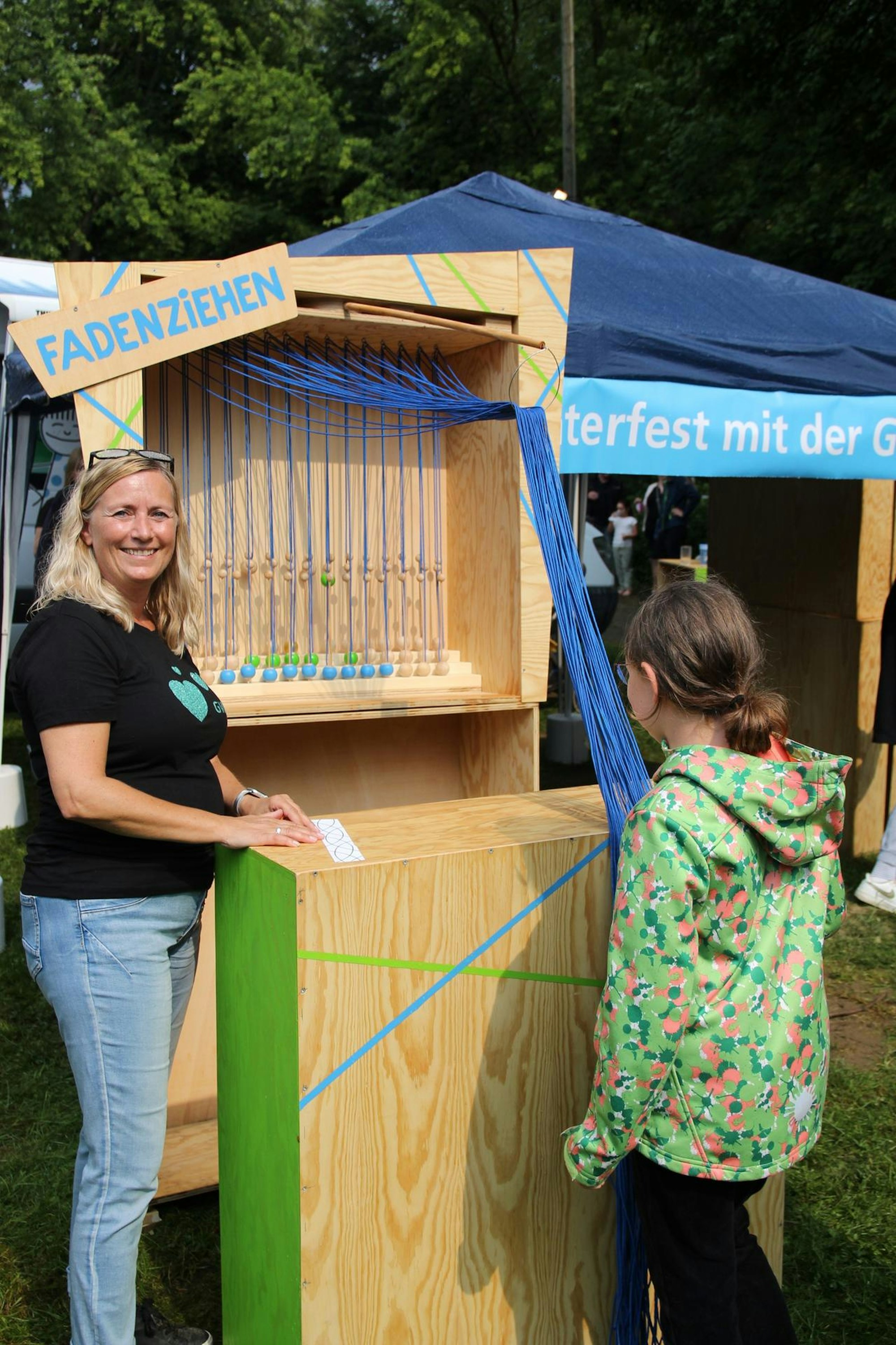 Der Familientag am Samstag begann schon am Nachmittag mit Spielen für die Kinder, die von den GWN organisiert worden waren. Mitarbeiterin Petra Laurent hatte die Station „Fadenziehen“ besetzt und erklärte, dass es mit „Kegelbahn“, „Ringe werfen“ und „Elektro“ drei weitere gebe, wofür die Kids Stempel auf eine Karte bekommen. Je nach Anzahl durften sie sich dann aus einem Schaukasten einen Preis aussuchen.
