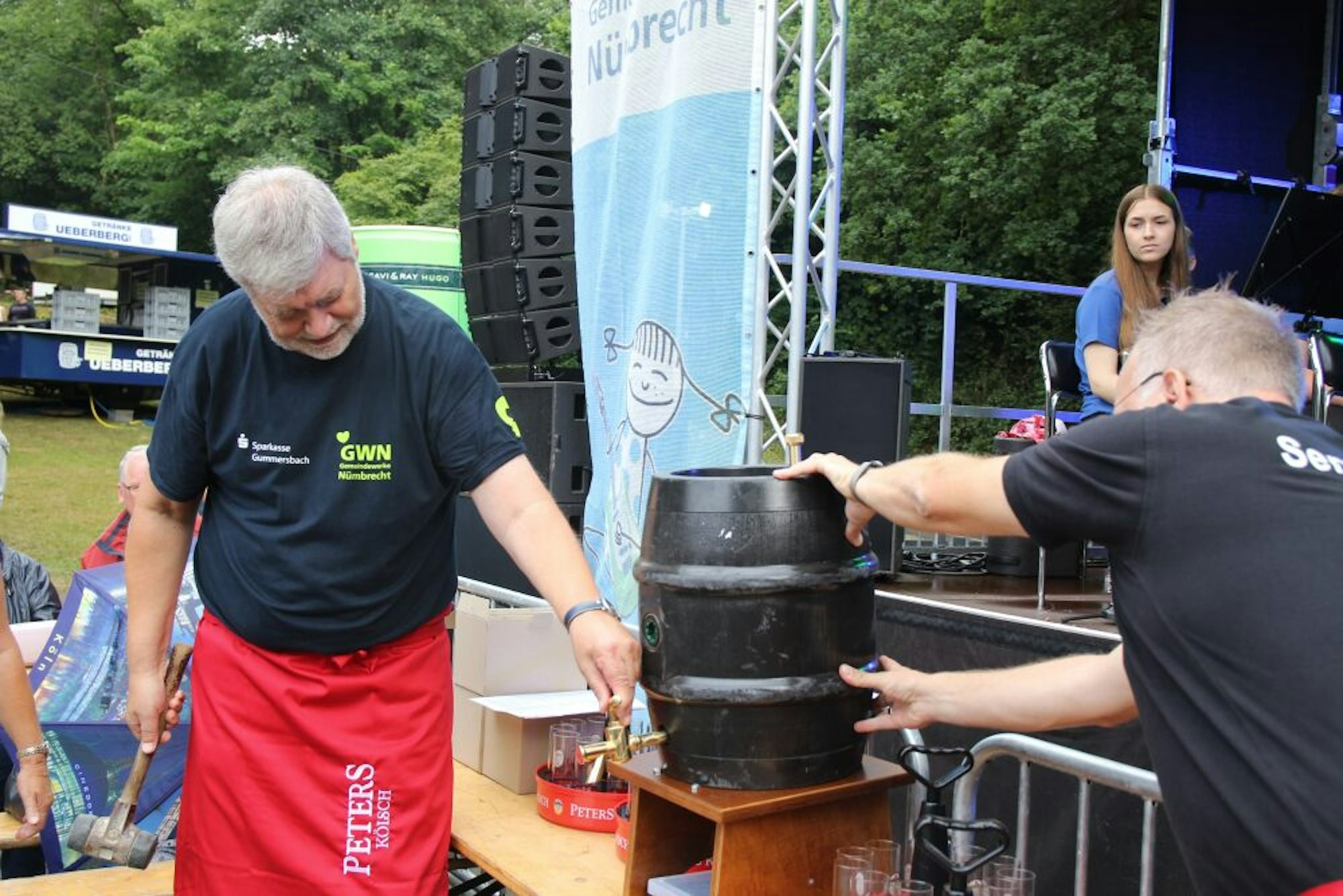 Zwei satte Schläge genügten Nümbrechts Bürgermeister Hilko Redenius, dann floss das Freibier.