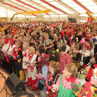 Das Festzelt der KG Rot-Weiß Lindlar mit 1800 Jecken bei der Herrensitzung. (Archivbild)