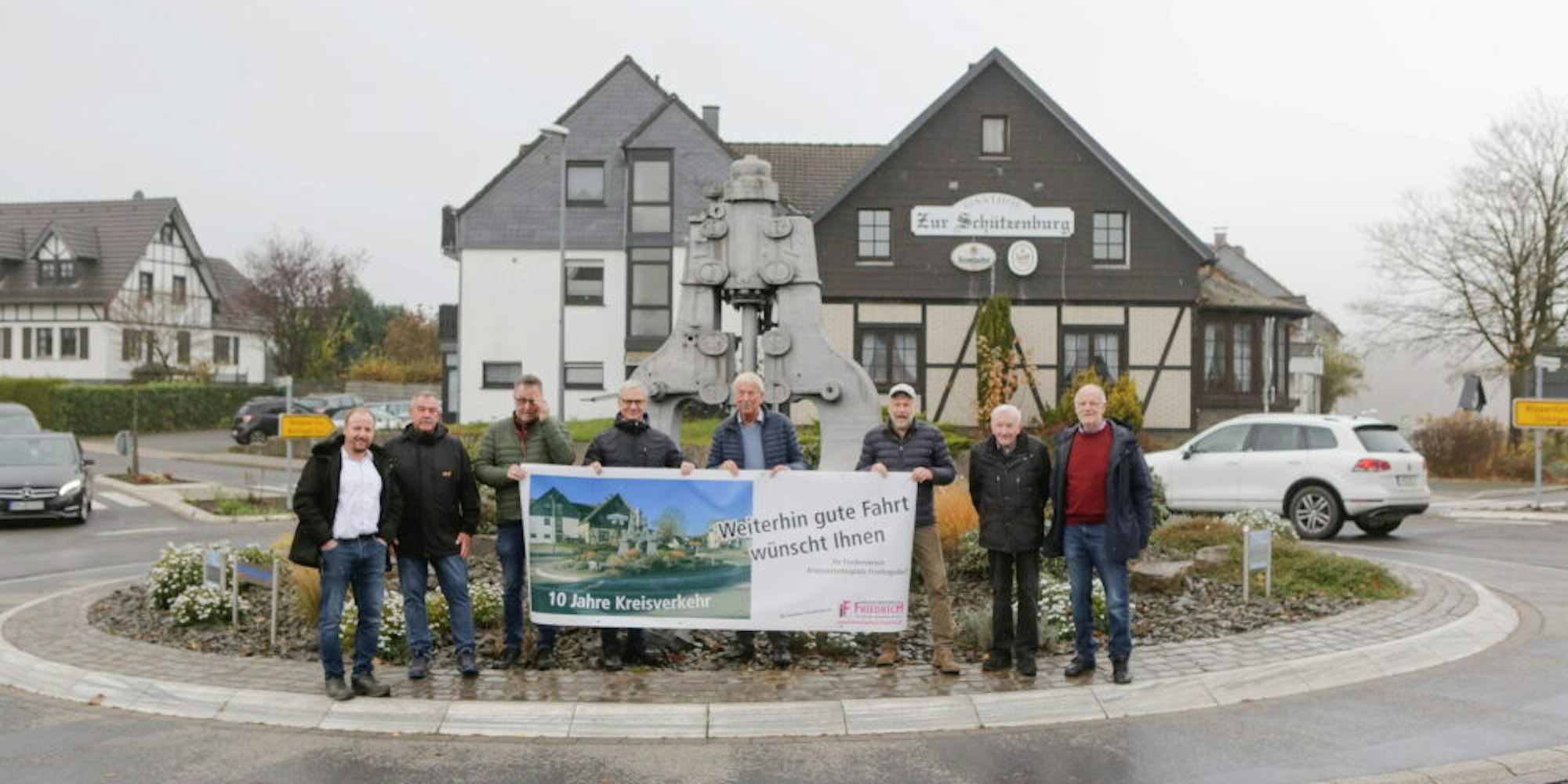 Frielingsdorf – Vor zehn Jahren, am 6. November 2011, wurde er eingeweiht – der Kreisverkehr mitten im Ort. Wilfried Orbach denkt gerne daran zurück. Immerhin haben die Frielingsdorfer mit dem Bau etwas ganz Besonderes erreicht: die Gemeinde Lindlar, der dort ansässige Rewe-Markt von Andreas Kleinschmidt und Privatpersonen – die dafür extra einen Förderverein gründeten – machten sich gemeinsam für „ihren“ Kreisel stark – und übernahmen zu je ein Drittel die Kosten. Der Ausbau eines Kreisverkehrs wurde nötig mit dem Neubau des Rewe-Marktes. „Geplant war zunächst ein kleiner überfahrbarer Kreisverkehr“ , erinnert sich Wilfried Orbach. Er ist Schriftführer des Fördervereins, Wolfgang Braun hat den Vorsitz.