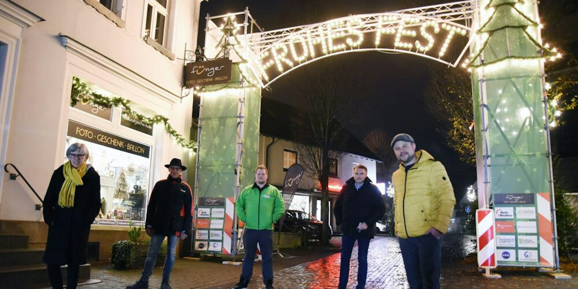 „Ich war von Anfang an überzeugt, dass sich der Bogen richtig gut als Eingangstor unseres Lindlarer Weihnachtsmarktes machen würde“, erinnert sich Fünger bei der gemeinsamen Präsentation mit Sponsoren, Vertretern der Gemeindeverwaltung und Einzelhändlern.
