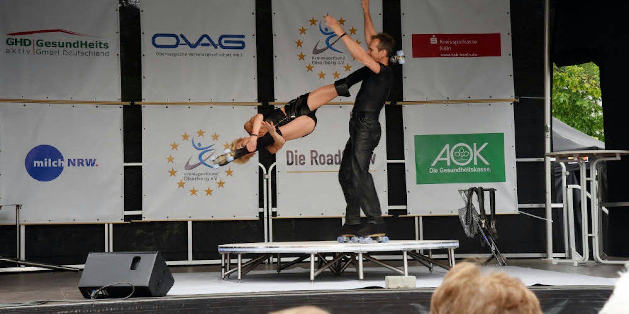Spektakuläre Vorführungen wie hier mit Rollerskates gehörten ebenso zum Bühnenprogramm wie Auftritte der Vereine.