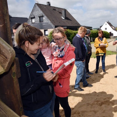 „Der Mannschaftsgeist ist auch beim Handball sehr ausgeprägt“, bemerkt Alexander Fischer von der Handballabteilung Frielingsdorf. Der Verein hat eine große Zielscheibe aufgebaut, in dessen Löcher die Besucher mit Bällen treffen müssen. Zu gewinnen gibt es Karten für ein Spiel des VfL Gummersbach. Sowohl die kämpferische, als auch die technische Komponente werde beim Handball gefordert, so Fischer. Bei der großen Eröffnung wurde auch eine große Torte angeschnitten und verteilt, die von der Firma Fiesta Events gesponsert wurde. Die Show zeigte sehr deutlich, dass Sport für Kinder, Jugendliche, Erwachsene und Senioren wichtig ist und Zusammenhalt schafft.
