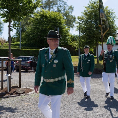 Hinter dem Gespann zieht ein roter Unimog einen besonders langen Anhänger, auf dem eine echte Klopapierrolle wackelt. Eine Trompeter-Gruppe lästert über den 1. FC Köln und versorgt sich mit der nächsten Ladung Strüßjer für das Publikum.