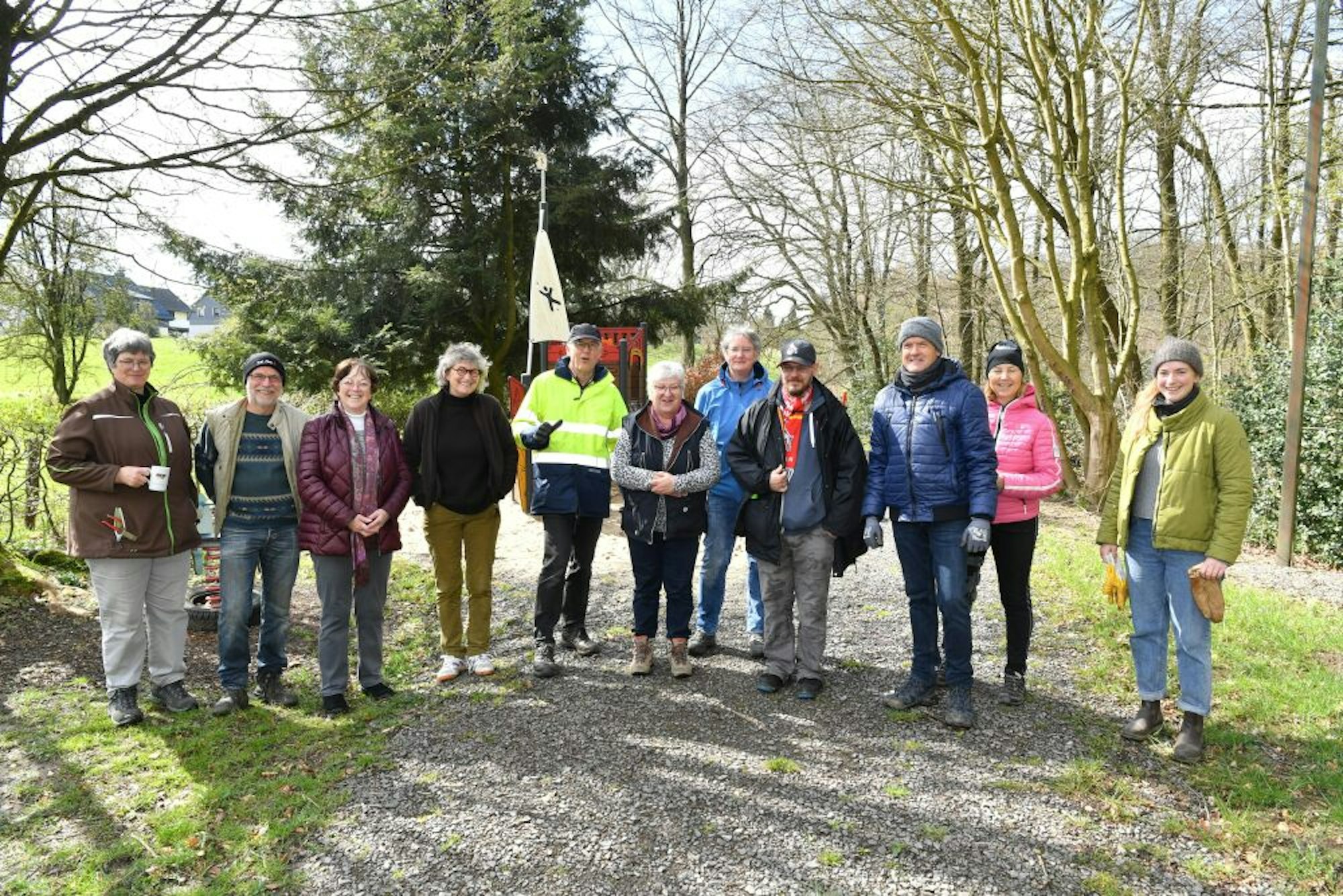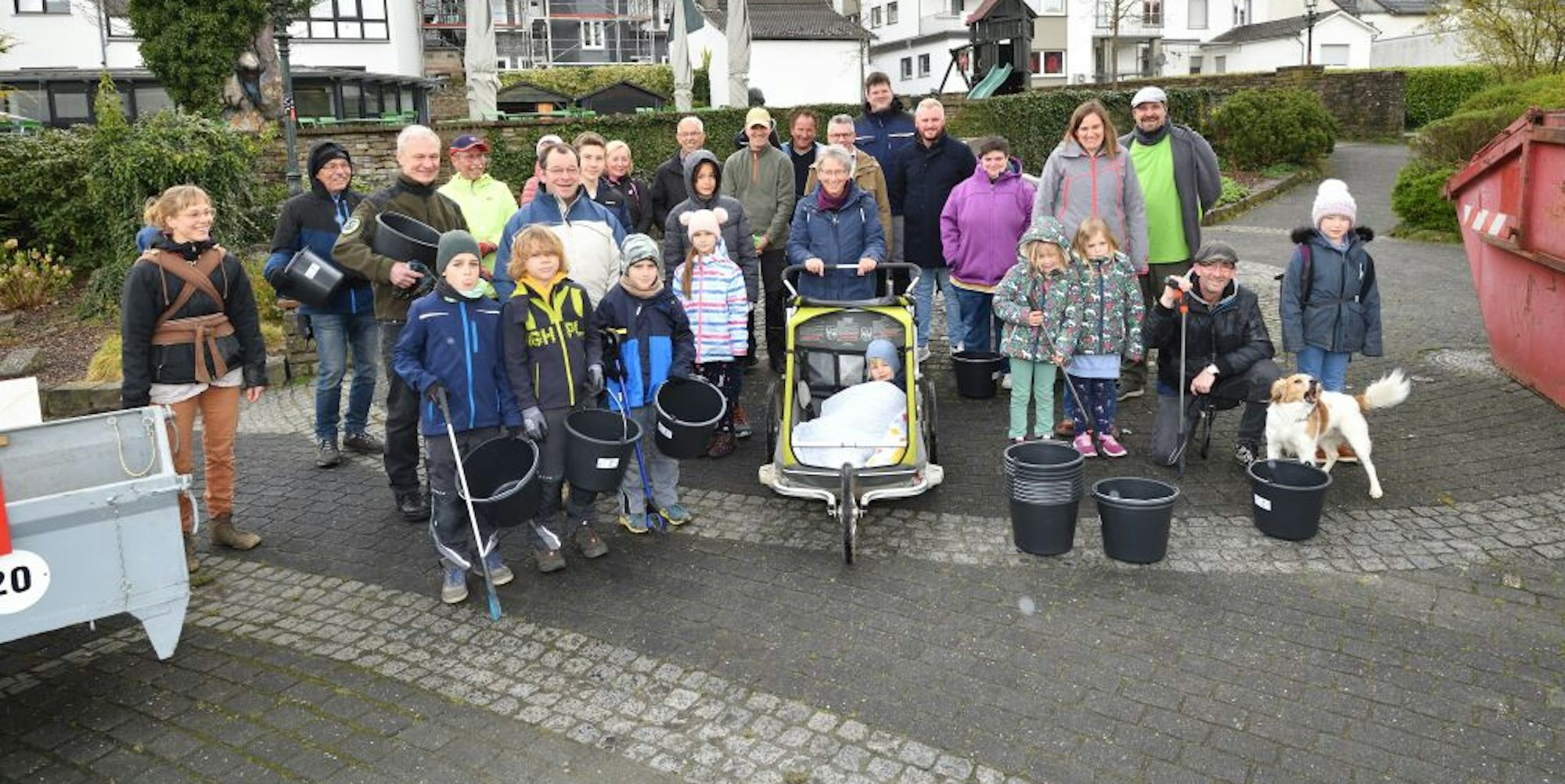 Zahlreiche Freiwillige starteten am Steenkühlerbrunnen in Lindlar zum Frühjahrsputz durch den Ort.
