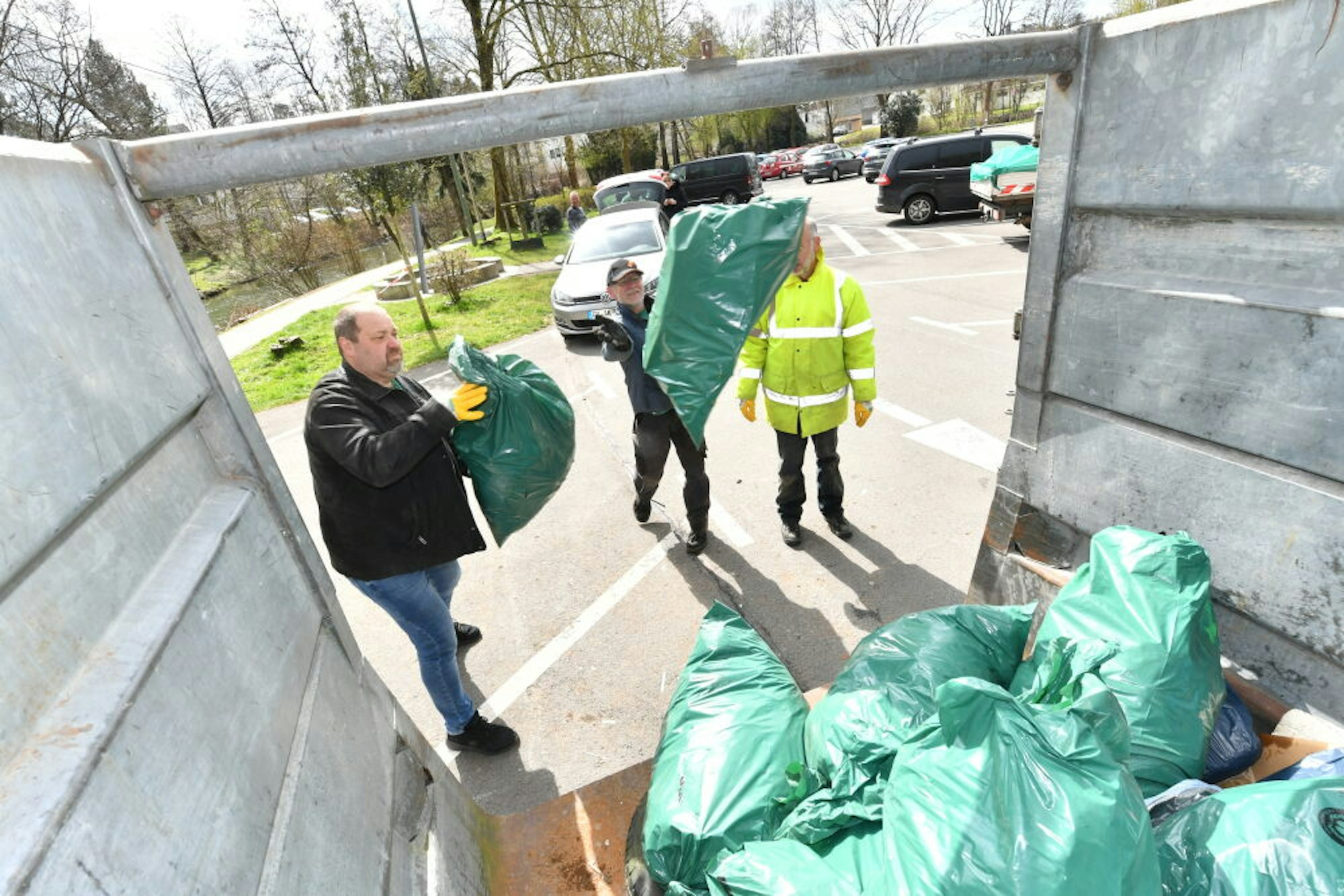 „Das ist bestimmt die 12. oder 13. Aktion mittlerweile“, zählt Matthias Pack vom Ordnungsamt der Stadt. „Wir haben wieder alle Bürgervereine und Nachbarschaftsgemeinschaften aufgerufen, beim Müllsammeln zu helfen.“ Mit dem Ergebnis sei er recht zufrieden. „Wir sind froh und dankbar, dass sich so viele beteiligen.“ Auf dem Parkplatz der Ohler Wiesen füllen sich langsam die drei bereitgestellten Container. Die DLRG oder auch der Sportfischerverein Obere Wipper seien besonders fleißig gewesen.