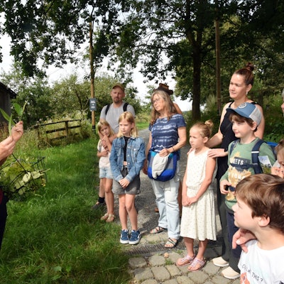 Bei den Hochbeeten, ebenfalls an der Schule, gibt Ökologe Stephan Hahn derweil Wissenswertes zu den dort angebauten Kräutern und Gemüsesorten preis. Die Besucherinnen und Besucher können die Samen gegen einen kleinen Obolus mitnehmen, um die Sorten im eigenen Garten wachsen zu lassen. Und am Bandweberhaus gibt es Gartentipps von Museumsgärtner Niko Lankes. Und so schlendern die Schaulustigen bei schönstem Wetter durch die volle Pflanzenpracht in den verschiedenen Ecken des Lindlarer Museums.