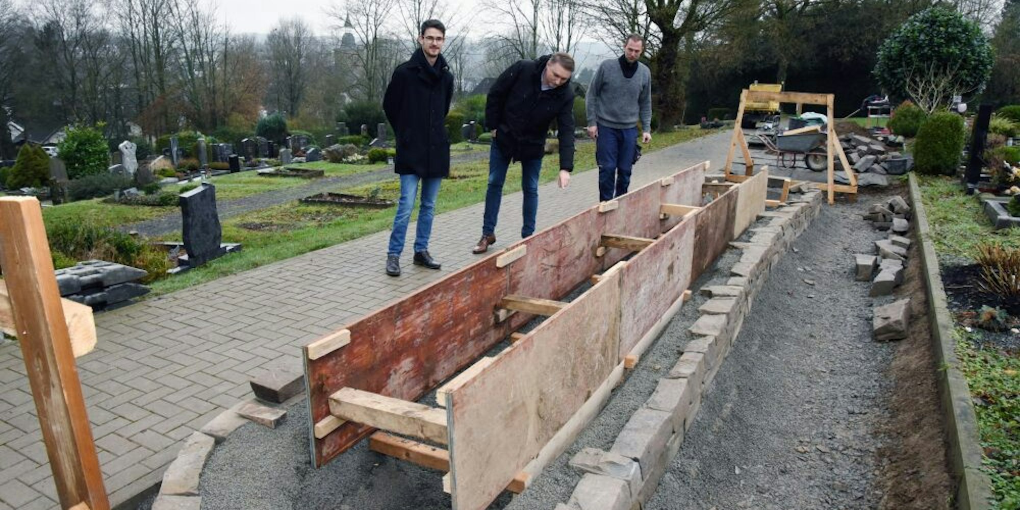 Die Arbeiten zum sechsten Abschnitt des Urnengartens auf dem Lindlarer Friedhof laufen.