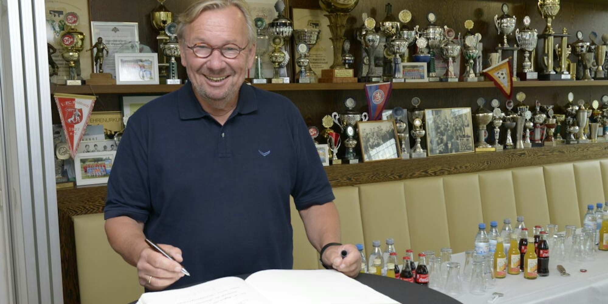 In das Goldene Buch der Stadt Wipperfürth trug sich Bernd Stelter bei einem Termin im VfR-Vereinsheim ein.