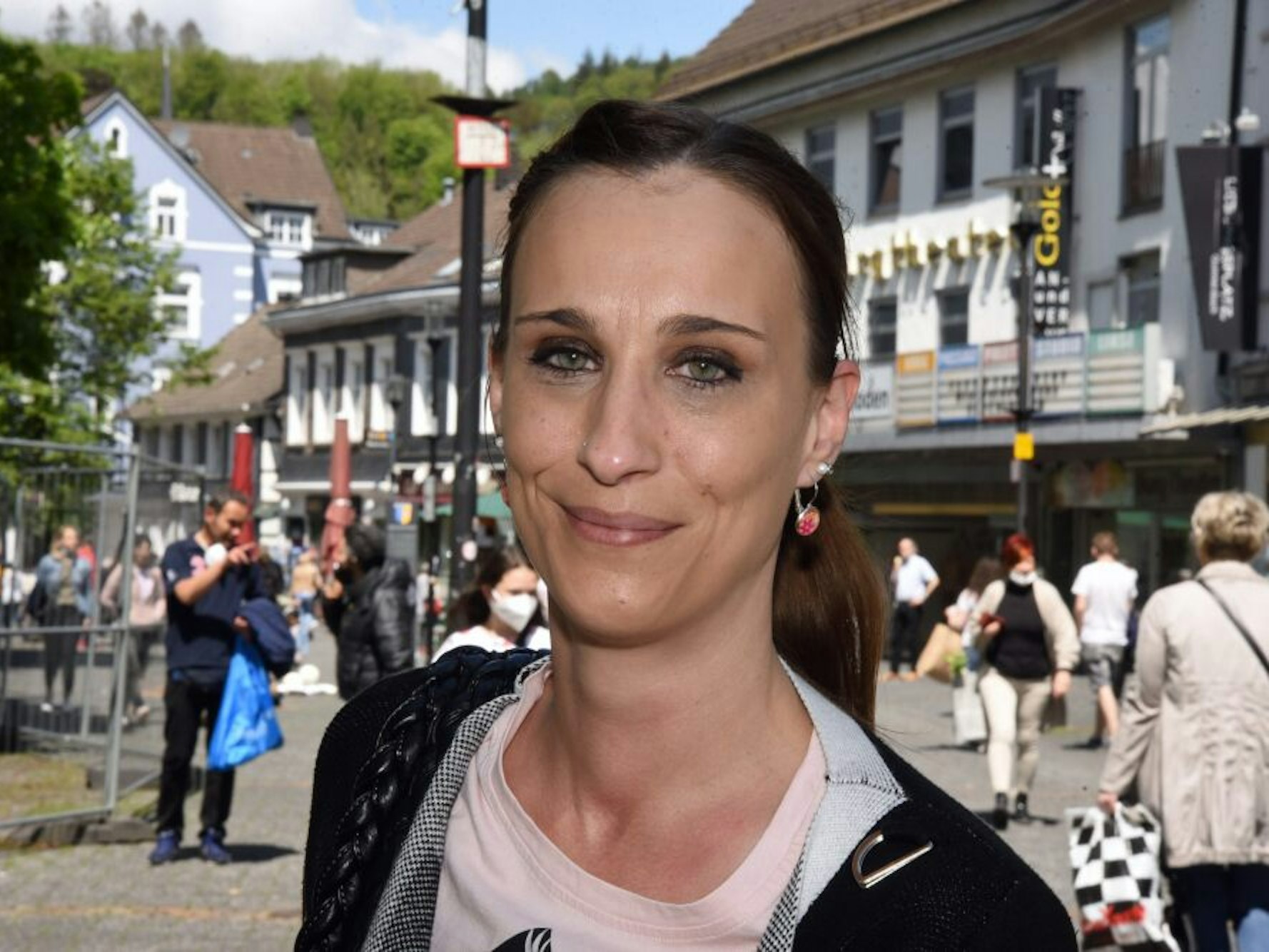 „Ich bin heute nach Gummersbach gekommen, um mich impfen zu lassen. Shoppen werden ich heute nicht, das mache ich lieber in Köln. Da dauert es mit den Lockerungen länger, aber ich freue mich schon, endlich wieder essen zu gehen.“