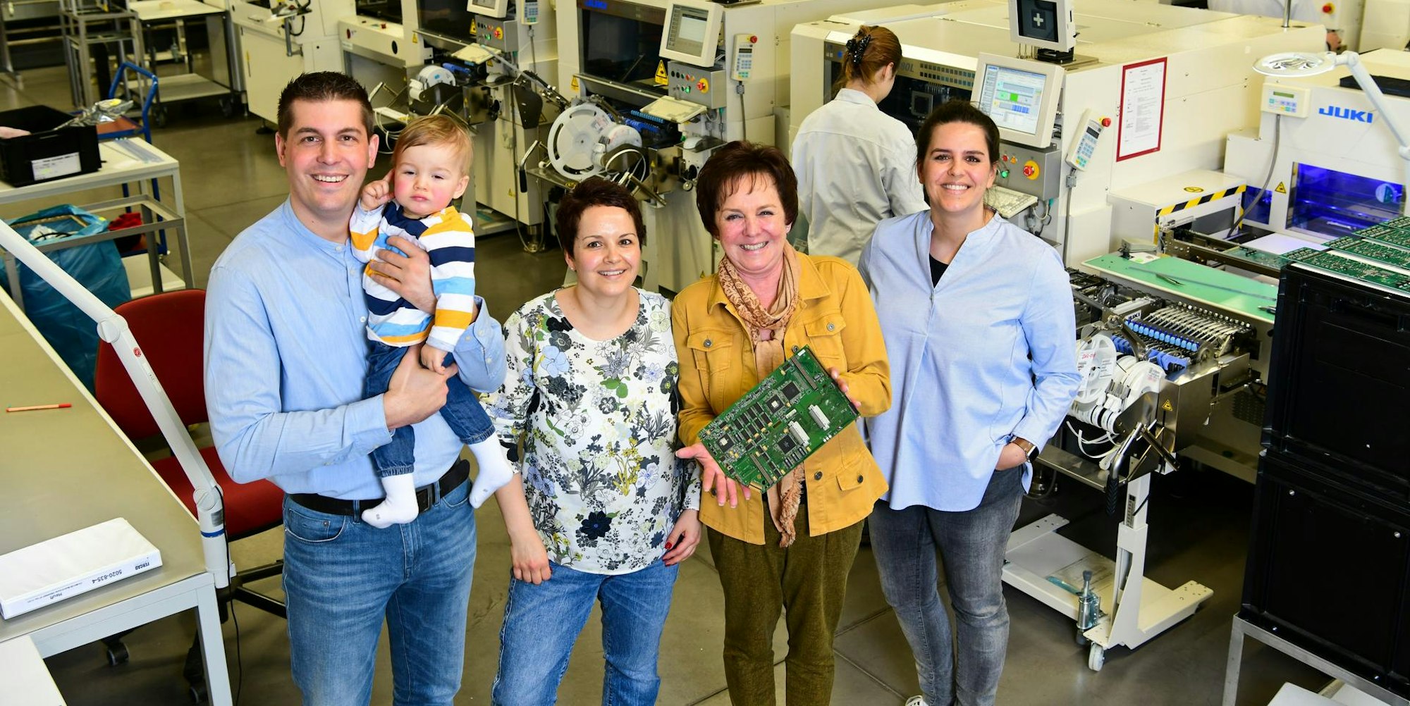 60 Mitarbeiter produzieren täglich rund 1000 Platinen. „Es sei denn es gibt Lieferengpässe. Wir sind wirklich stark abhängig vom chinesischen Markt. Gibt es dort irgendwelche Katastrophen, stagniert hier bei uns die Produktion“, erklärt Mareike Aumüller (34), die erst 2010 dazu gestoßen ist und die Personalabteilung übernommen hat. „Es gibt durchaus Kunden, die wollen den Herrn Aumüller sprechen“, scherzt sie. Dass man den hier nicht findet, sei für einige im ersten Augenblick ungewöhnlich.