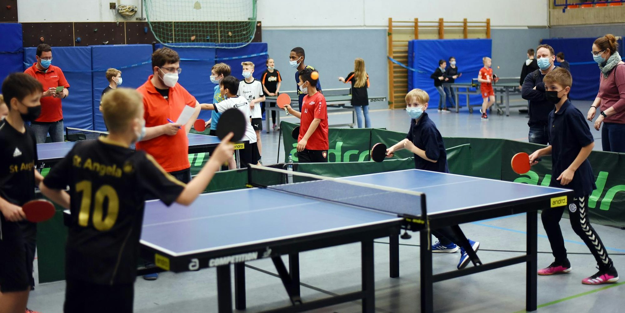 In der Sporthalle Marienheide traten 140 Kinder zwischen 11 und 13 Jahren beim Tischtennis an.