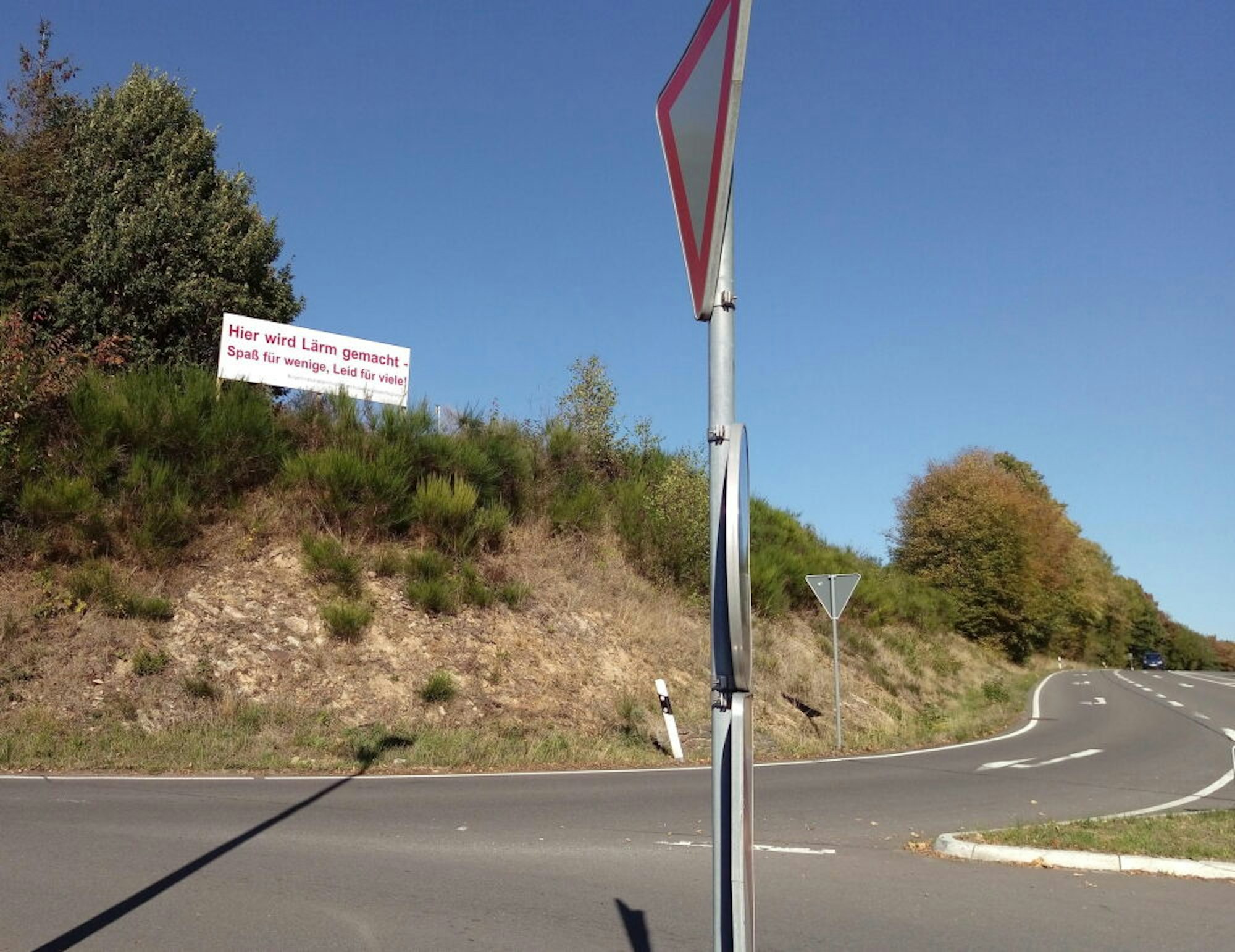Mit großen Plakaten an der Landesstraße macht die Bürgerinitiative regelmäßig auf ihr Anliegen aufmerksam.
