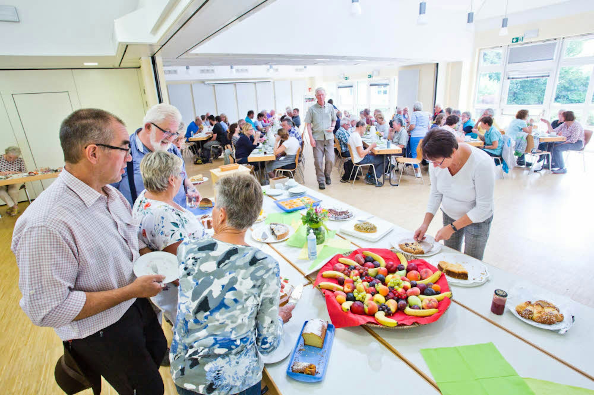 Im Pfarrheim nebenan werden alle Gruppen von einem Helferteam mit Kuchen und Obst versorgt.