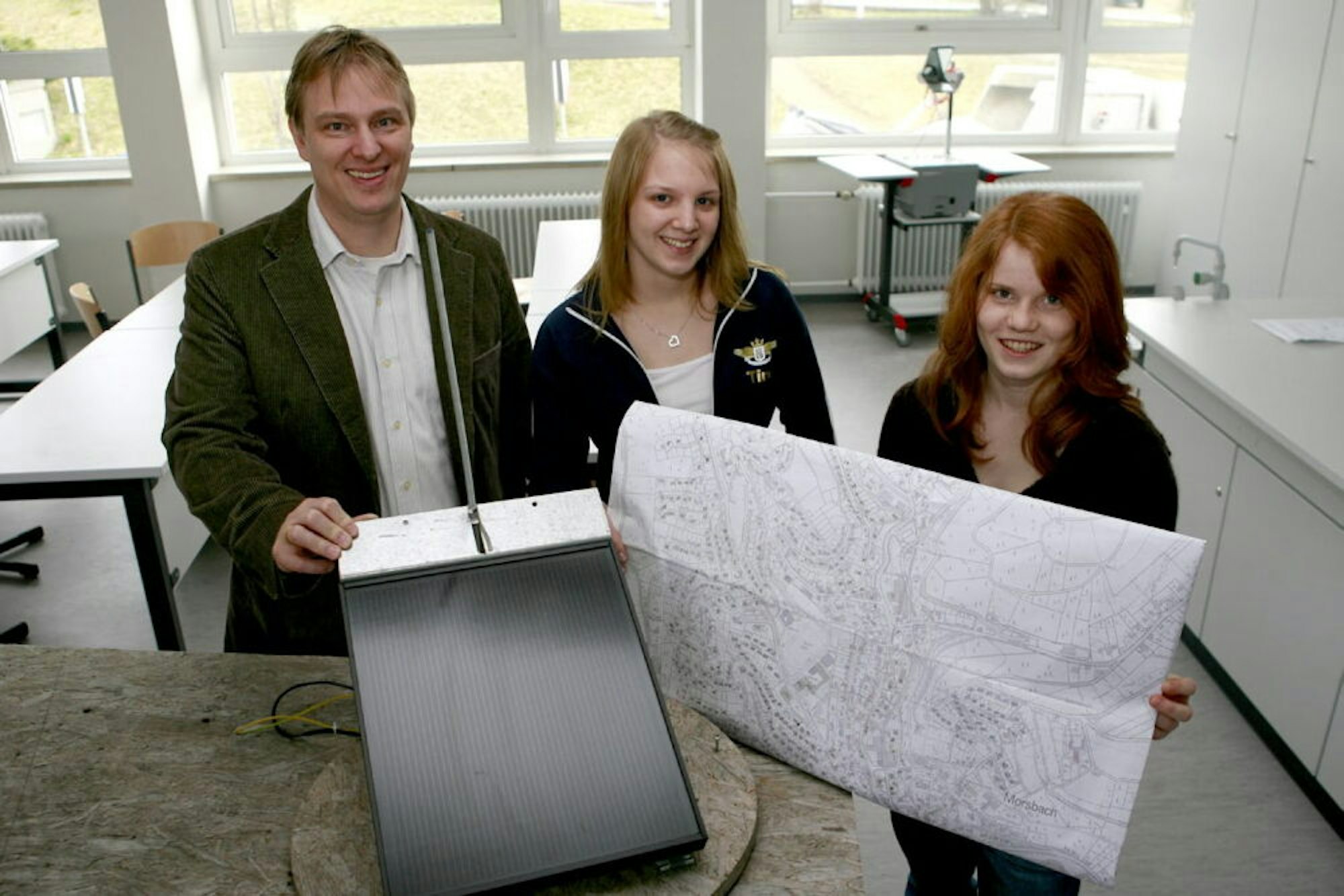 Ausgezeichnet: Christine Mauelshagen (M.) und Rosa Meyer sowie ihr früherer Erdkundelehrer André Szymkowiak.