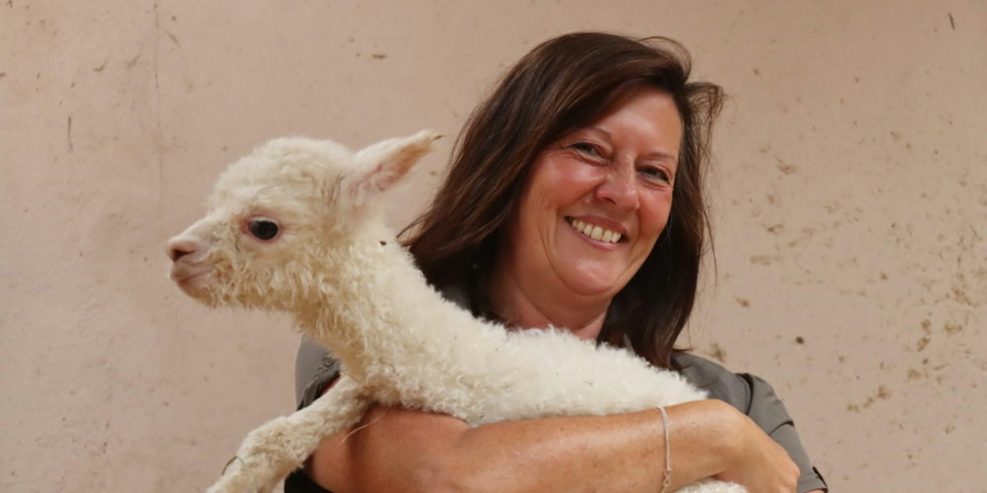 Unterm Regenbogen fühlt sich Stefanie Hützen, die aus Leverkusen stammt, in ihrer neuen Heimat Überholz besonders wohl. Viel Freizeit verbringt sie auf dem Alpaka-Hof im nahen Kohlberg, wo „Kaisers Churchill“ gerade erst auf die Welt gekommen ist.