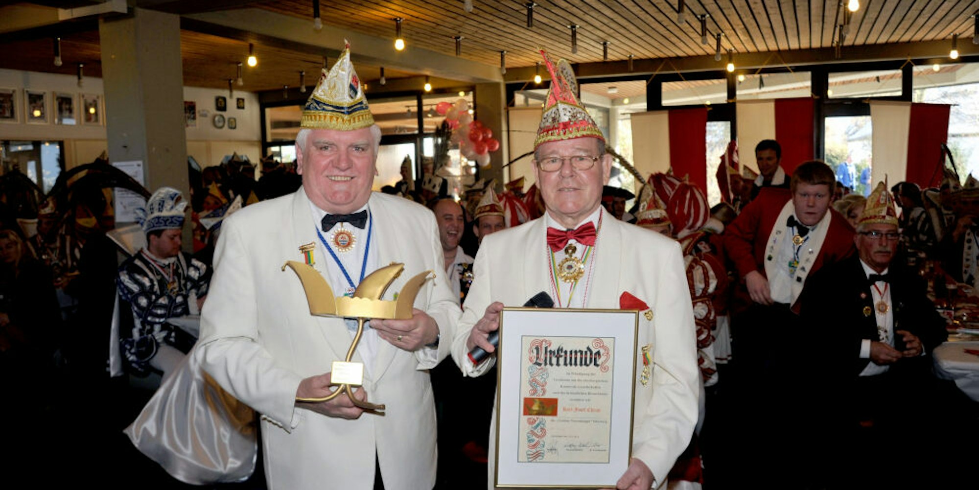 Karl-Josef Christ (links) mit der Narrenkappe.