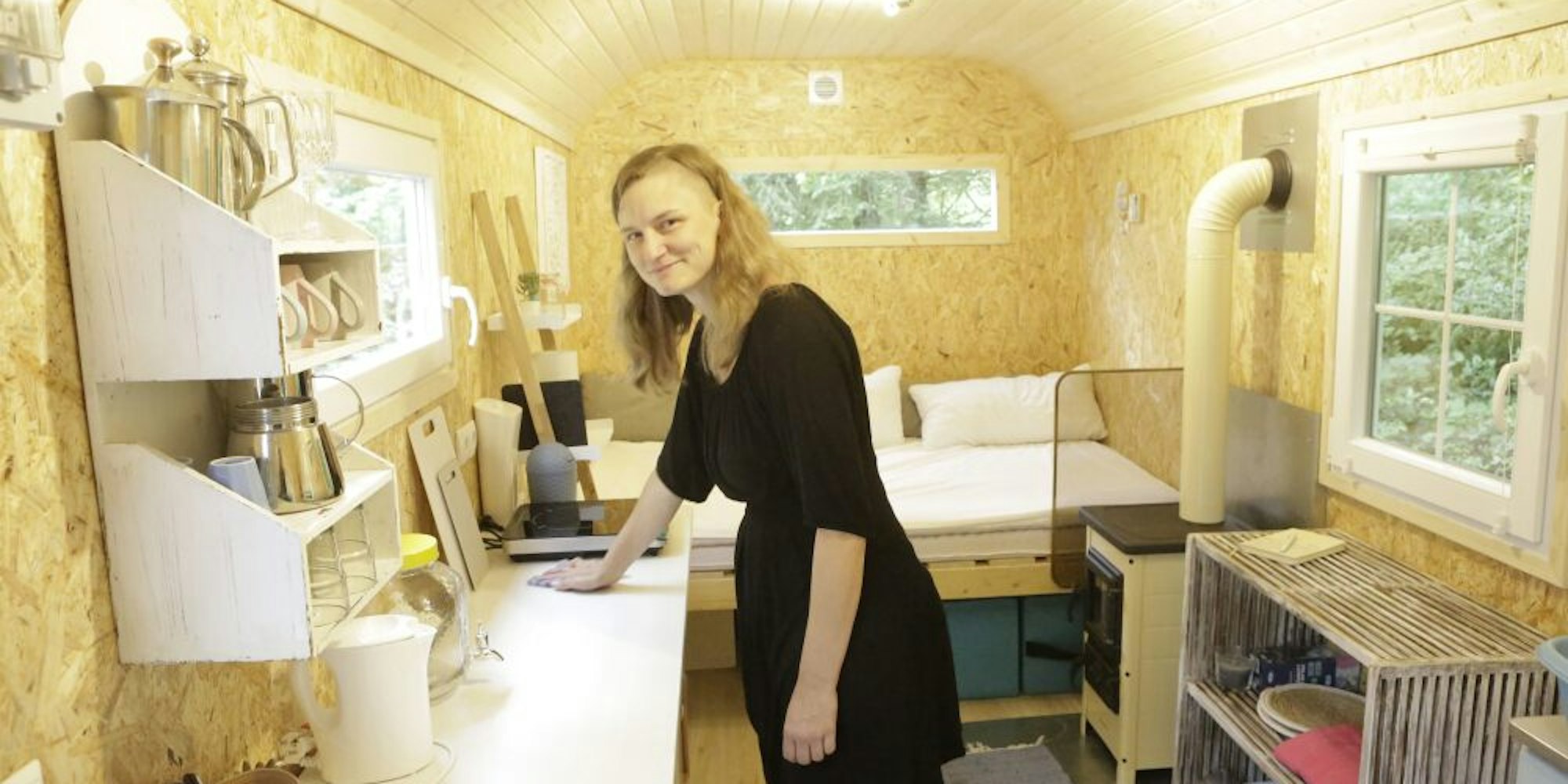 Ausprobieren kann man das hüllenlose Camping in Lindlar auch. Dafür hat der Verein Helios einen Bauwagen hergerichtet und Rotkehlchen getauft.