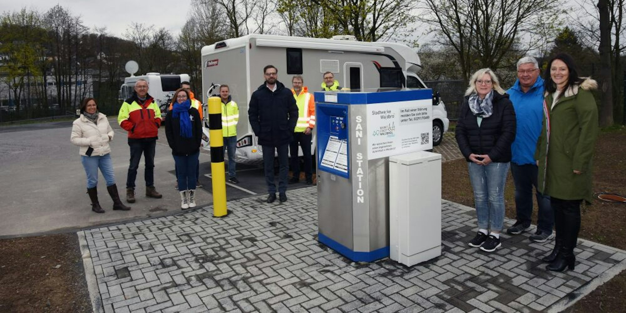 Markus Franken, technischer Mitarbeiter der Stadtwerke, erklärte, dass nach einem Münzeinwurf in die vandalismussicher gebaute Sanitärstation auf der Vorderseite bis zu 100 Liter Frischwasser entnommen oder auf der Rückseite Fäkalien entsorgt werden können. Anschließend bleibe genügend Zeit, um den verschmutzten Tank zu spülen. Gleich daneben befindet sich der Schacht für das „Grauwasser“ aus Dusche und Spüle, das dort kostenlos entsorgt werden kann. An der Elektrobox können sich die Nutzer der insgesamt vier Wohnmobilstellplätze mit Strom versorgen.