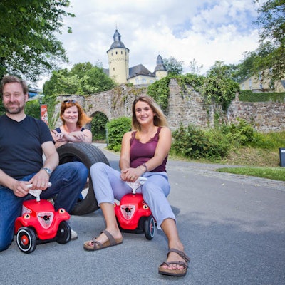 Vor zwei Jahren hatten der Oberbergische Kreis und der Bobby-Car-Verband erstmals ein solches Rennen den Schlossberg hinab organisiert, erklären Verbandsvorsitzender Bernd Thoma aus Aglasterhausen-Michelbach und Kreiskulturamtsleiter Steffen Müller unisono. „Und uns hat es hier so gut gefallen, dass wir gerne ein echtes Wertungsrennen hier veranstalten wollten“, so Thoma. Er fand offene Ohren.