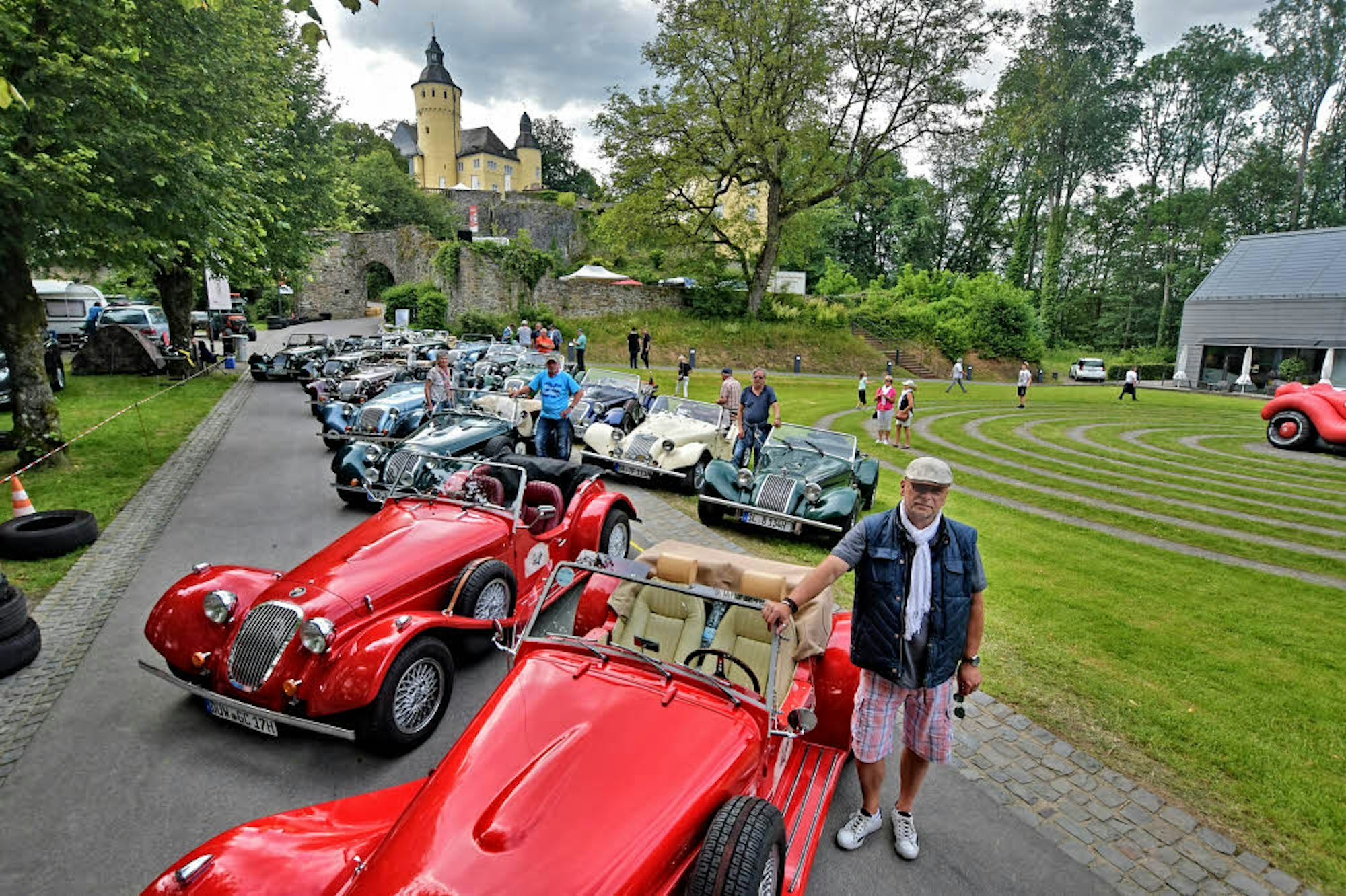 Viel größer als Bobby-Cars: Auch die Teilnehmer des Merlin-Treffens machten am Samstag einen Abstecher zu Schloss Homburg.