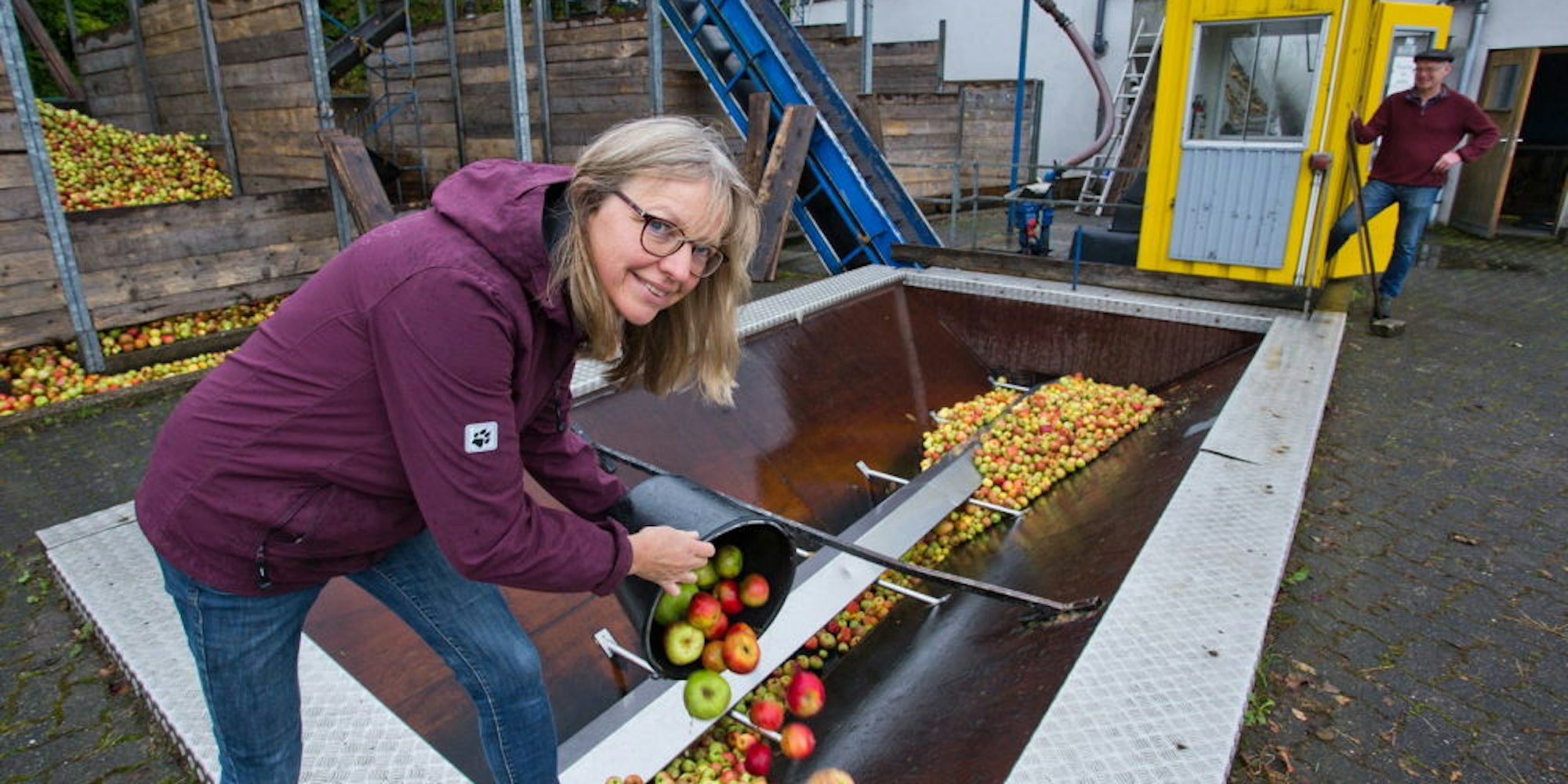 In der Fruchtsaftkelterei Weber wird Streuobst zu frischem Saft gepresst.
