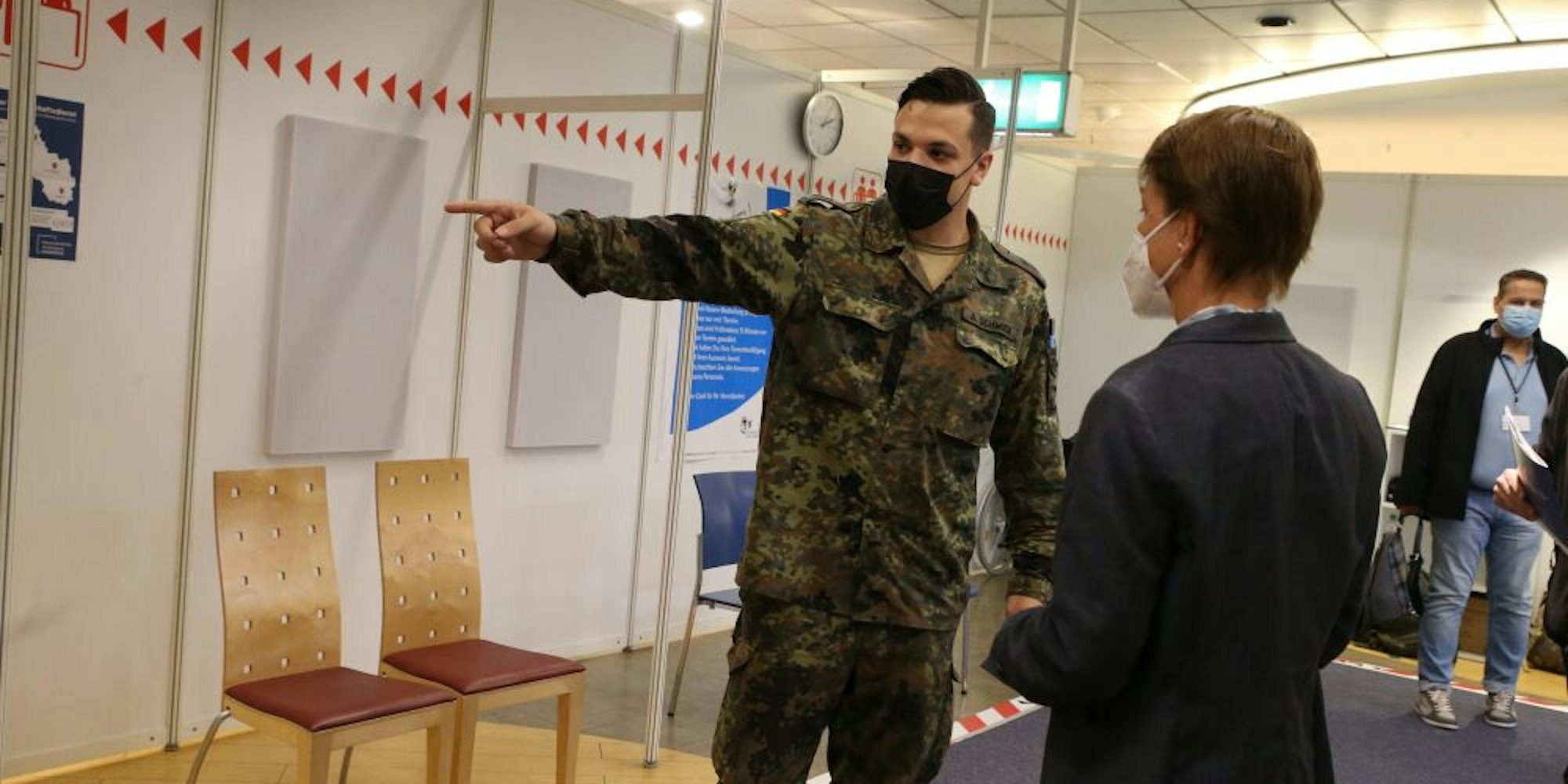 Wer nicht gleich durchblickt im Impfzentrum, dem bieten die Soldaten ihre Begleitung an.