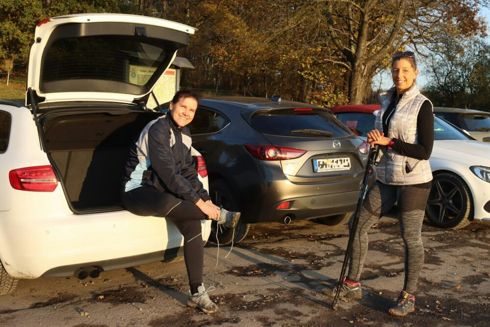 Während auf dem Parkplatz am Wiehler Immerkopf nur einzelne Autos parkten, war der Oberholzener Wanderparkplatz am Samstag richtig voll. Da der Platz nicht ausreichte, standen die Autos bis hinunter ins Dorf und auf der anderen Seite des Höhenrückens in Richtung Alpetal. „Im Moment geht ja nur Outdoor“, sagte die Wiehlerin Stefanie Vongehr. Sonst sei sie mehrmals wöchentlich im Fitnessstudio: „Jetzt muss ich eben anders sehen, wie ich mich fit halte.“ Begleitet wurde sie von Marina Giehl aus Reichshof, die sonst mit dem Rad nach Oberholzen fährt. Sie erzählte, dass schon in den letzten Tagen dort sehr viele Menschen unterwegs gewesen seien: „Aber auf der sieben Kilometer langen Runde verteilt sich das. Man muss nicht um die Leute herumlaufen.“