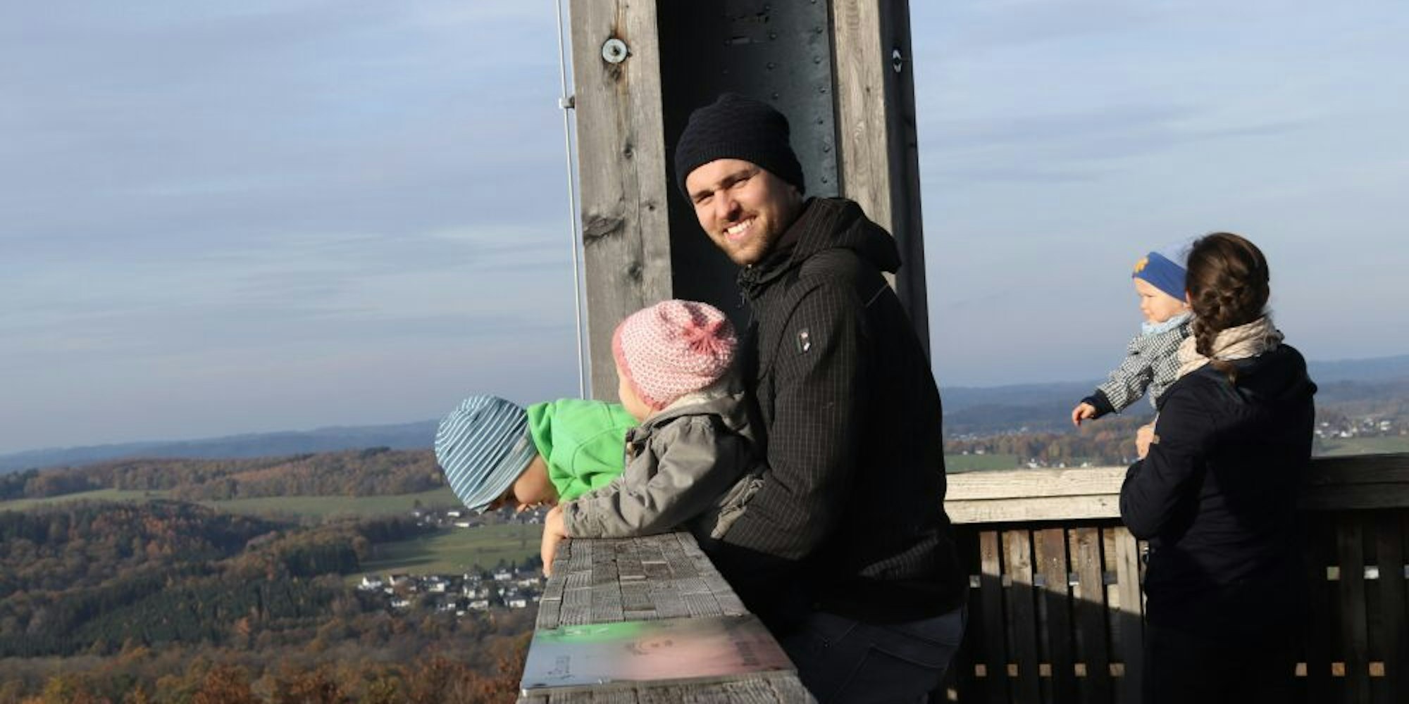 Hoch hinaus wollte dabei Familie Scholl aus Wiehl, die sich den Nümbrechter Wald als Ziel für ihren Wochenendausflug ausgesucht hatte. Ganze 154 Stufen hoch ging es für die Eltern mit ihren drei Kleinkindern den Aussichtsturm hinauf, bevor sich ein wundervolles Panorama mit einem Blick bis ins Siebengebirge und zum Kölner Dom entfaltete. Stolz strahlte der 5-jährige William und zeigte mit dem Arm: „Da ist Schloss Homburg – das kenne ich.“