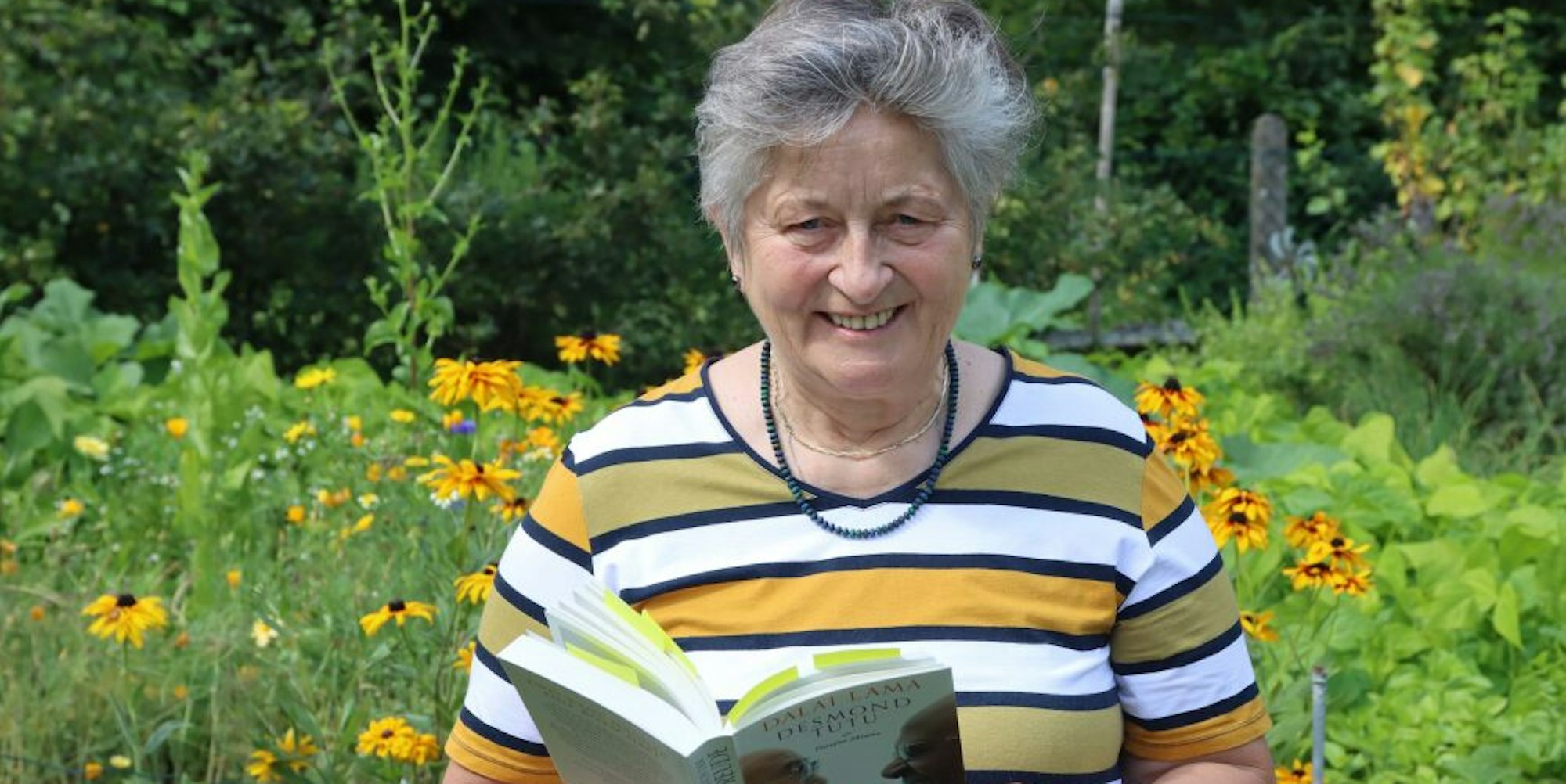Nümbrecht – Shortbreads, eine schottische Gebäckspezialität, liegen auf dem Terrassentisch im Garten von Gunhild Hartmann, daneben „Das Buch der Freude“ von Douglas Abrams. „Es ist das Wertvollste, was ich besitze“, sagt die 71-Jährige. Sie hat es vor gut einem Jahr von ihrer Tochter geschenkt bekommen, die vor Jahren nach Schottland ausgewandert ist. „Sie schickt mir immer tolle Bücher, aber dieses hier ist einzigartig.“