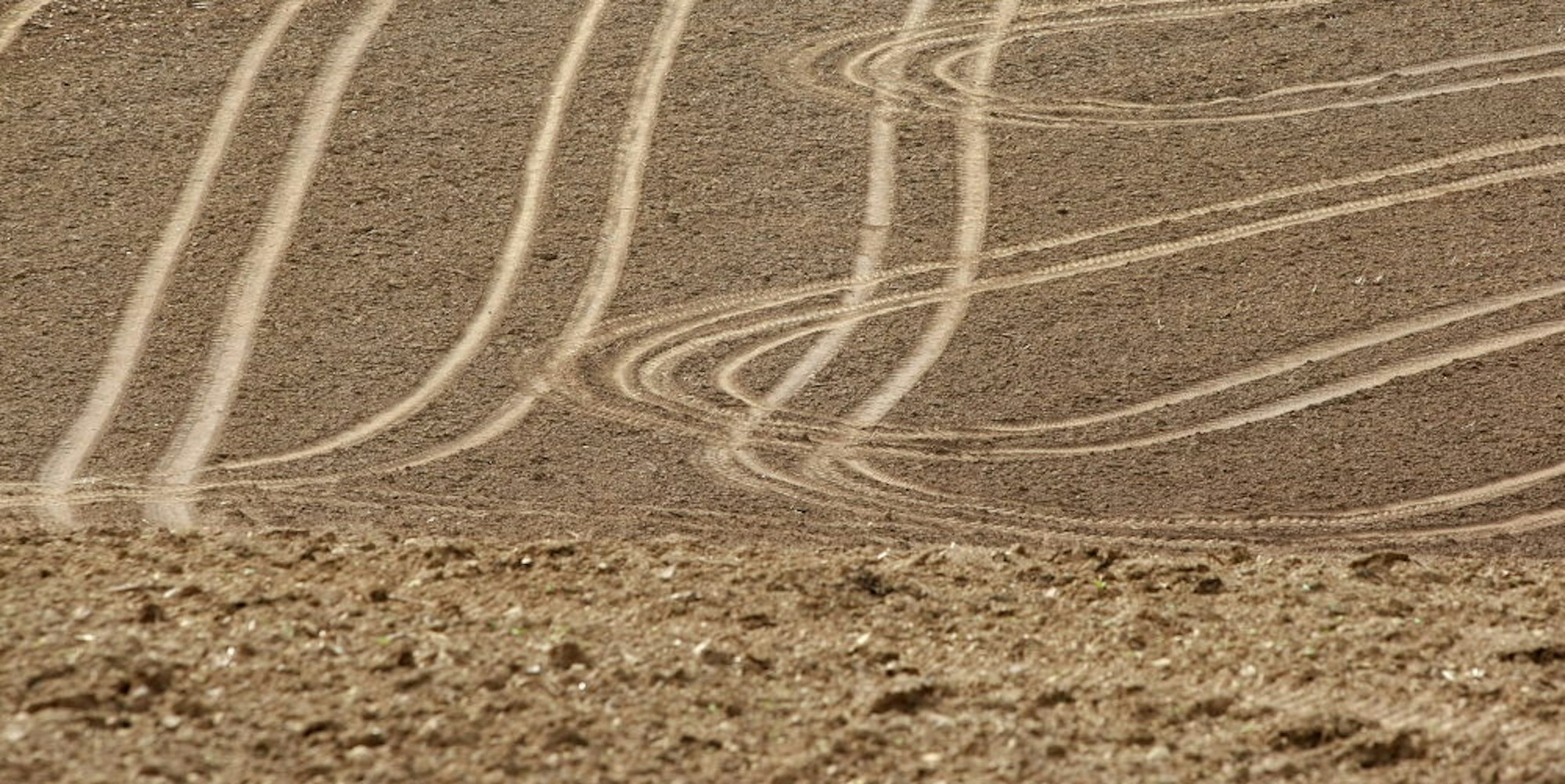 Eine Ackerfläche mit Traktorspuren in Reichshof-Hespert
