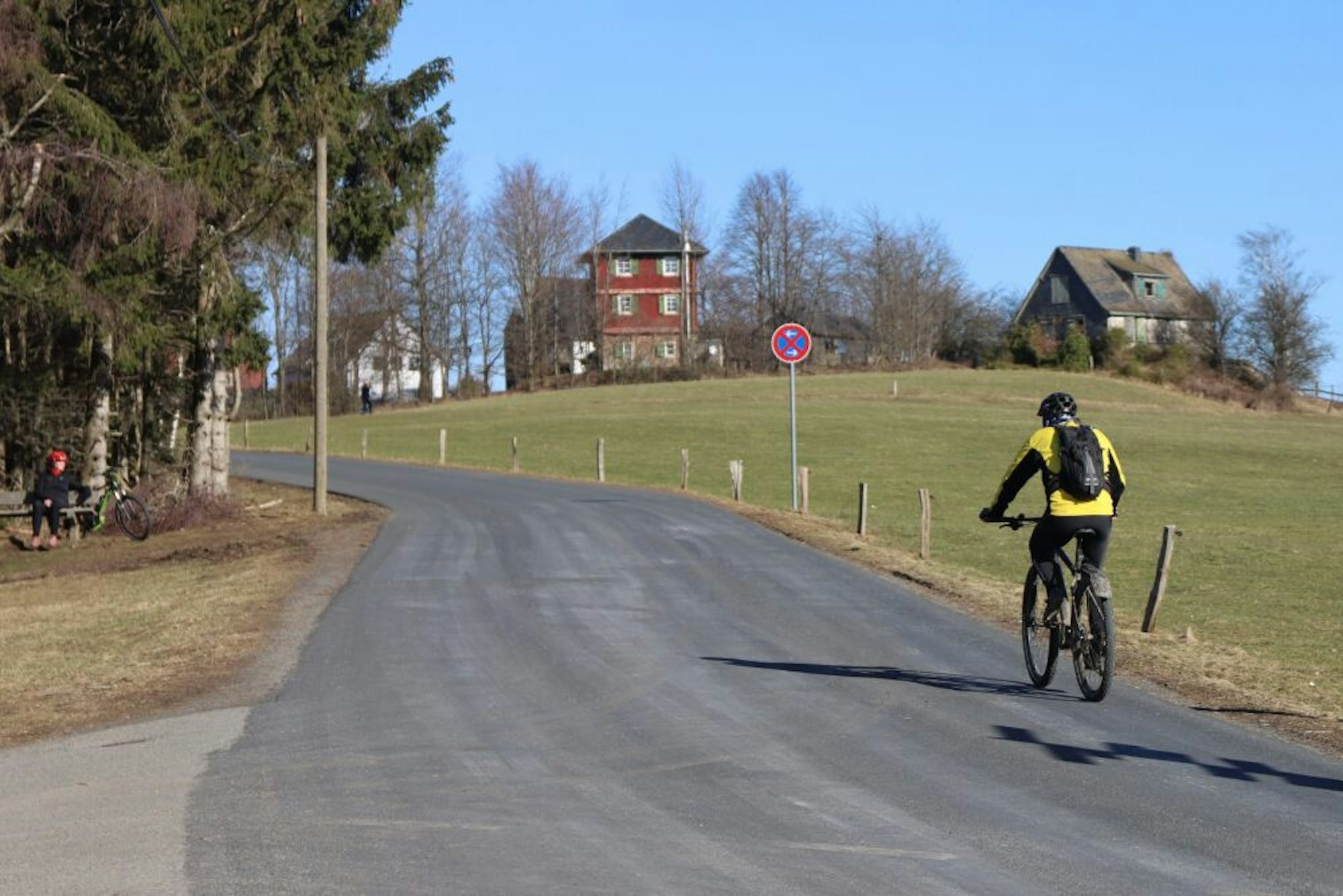 Ein einsamer Radler zog seine Runden über oberbergische Höhen.