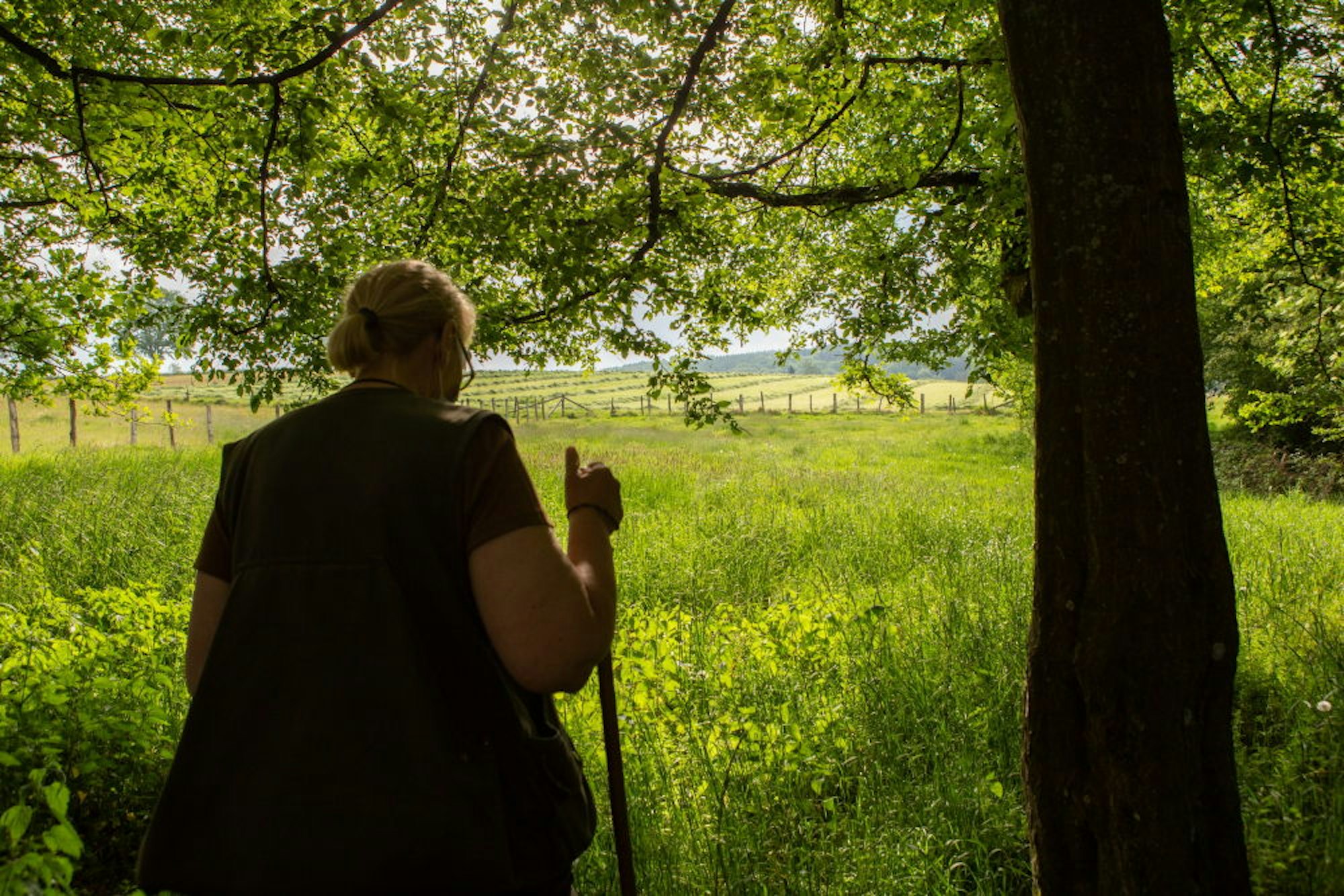 So stehen sie und ihre Mitstreiter in einer Reihe, in dieser Linie bewegen sich alle langsam vorwärts. In den Händen halten die Retter Holzstöcke, die genau anderthalb Meter lang sind und somit jedem zeigen, wie groß der Abstand zum Anderen immer zu sein hat – ein Geschenk von Oberbergs Jägern an die Gruppe, die überdies gerade Spenden sammelt, um davon Technik für die Suche zu kaufen, zum Beispiel eine Drohne mit Wärmebildkamera. Zudem helfen die Hölzer bei der Suche in den kniehohen Gräsern. In fünf Jagdrevieren ist die Gruppe inzwischen unterwegs. Drei davon liegen in Oberberg, eines im Nachbarkreis Rhein-Sieg. „Aber es gibt inzwischen Anfragen bis nach Köln“, berichtet die Wiehlerin.