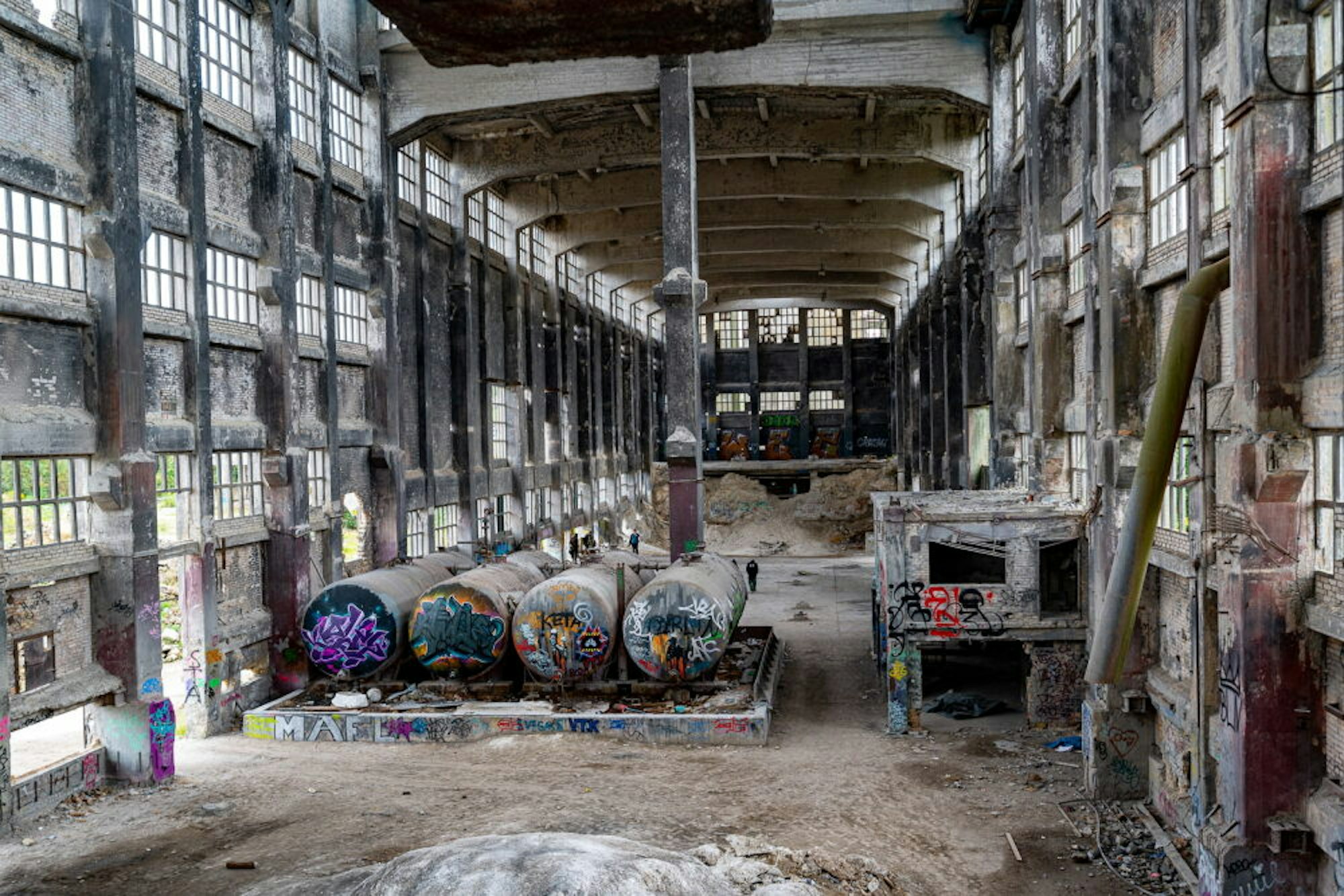 Bilder aus Berlin. Einst anatomisches Zentrum einer Universität in Berlin, heute von unzähligen Sprayern gestaltet. Die Emporen gewährten einst den Studenten freien Blick, wenn der Professor den Leichnam zerlegte